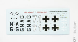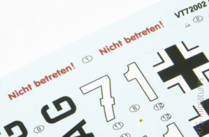 Kalkomania wygląda na produkt Eduarda, ale trudno to orzec, bo praktycznie brak na niej kolorów innych niż czerń i biel. Jedyny akcent kolorystyczny to czerwony napis: Nicht Betreten! Kalkomanie wyglądają ładnie: ostro, bez wad, czarny jest czarny, brak rastra i przesunięć.