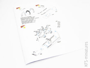 Instrukcja również została odnowiona, ale nie do końca. Kolory elementów wnętrza oraz detali nie pokazano, a opisano zbiorczo na danej stronie. Na szczęście sylwetki z malowaniami zostały pokolorowane. Reszta instrukcji pozostała taka jak w oryginalnym wydaniu. Ze zmianami wynikającymi z zastąpienia części żywicznych i blaszek wydrukami 3D.