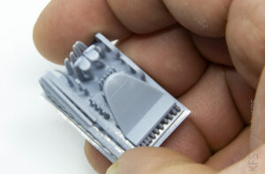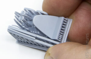 Z kolei blaszkę zubożono względem oryginału, a to dlatego, iż część detali została teraz zastąpiona wydrukami. Np. pedały orczyka teraz są jednym elementem w 3D, a poprzednio składały się z części żywicznych i blaszek. Zostały najważniejsze rzeczy: tablica zegarów z kliszą, pasy oraz siatki do wlotów chłodnic.