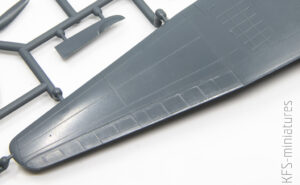 Tak więc zestaw jest multimedialny i po przejrzeniu zawartości pudełka nie widzę tutaj za bardzo pola do popisu dla producentów zamienników. No, może trzeba by było postarać się o lepsze imitacje wydechów. Na ramkach znajdziemy sporo części, których jakość jasno wskazuje na pochodzenie produktu: short-run z początku XXI wieku, niekoloryzowane. Powierzchnia największych elementów wygląda przyzwoicie, ale na pewno trzeba by ją lekko spolerować, a linie podziału lekko pogłębić i wyostrzyć, bo gdzieniegdzie gubią się na obłościach. Brak jest kołków pozycjonujących, a wnętrze kadłuba oraz gondoli z wnękami podwozia świeci pustką i śladami po wypychaczach. Za to faktura elementów pokrytych płótnem jest całkiem w porządku.