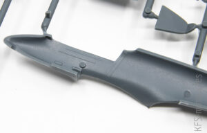 Na wszystkich detalach widać delikatne nadlewki (czasami naprawdę minimalne, ale jednak są), szwy po łączeniu form i drobne niedoskonałości jak minimalne jamki. To wszystko jednak nie będzie ani trudne, ani zbyt męczące w skorygowaniu. Elementy przeźroczyste są naprawdę bardzo czysto odlane. Mam wrażenie, iż forma została wypolerowana. Tam, gdzie oszklenie jest proste, jest też doskonale przejrzyste i nie zniekształca. Na górnych panelach owiewki pojawia się niestety soczewkowanie. Kabinę dostajemy wyłącznie w wersji zamkniętej.