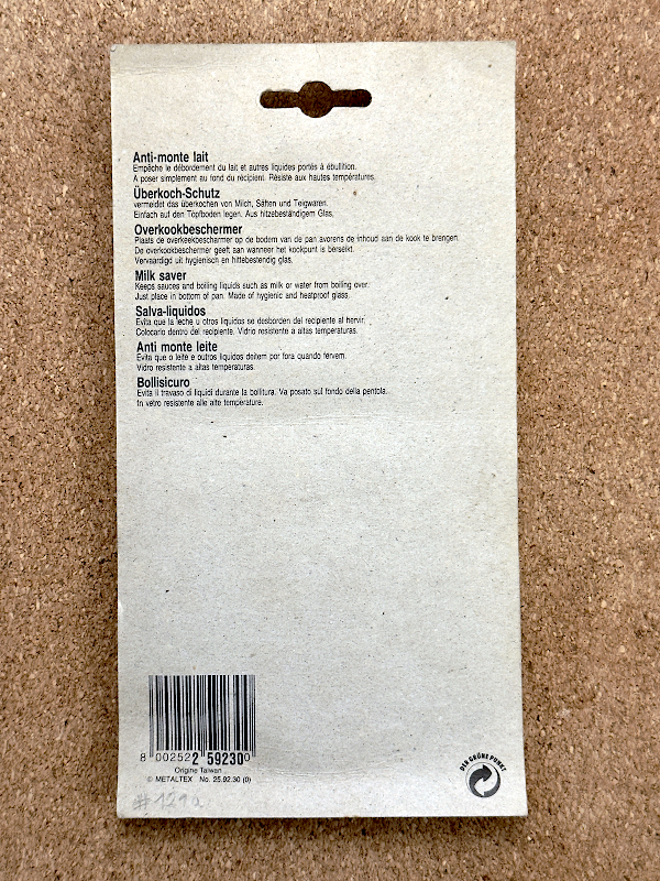 Chroni sosy i gotowane płyny, takie jak mleko lub gotujący się makaron przed wykipieniem. Po prostu połóż go na dnie rondla. Wykonany z bezpiecznego żaroodpornego szkła.