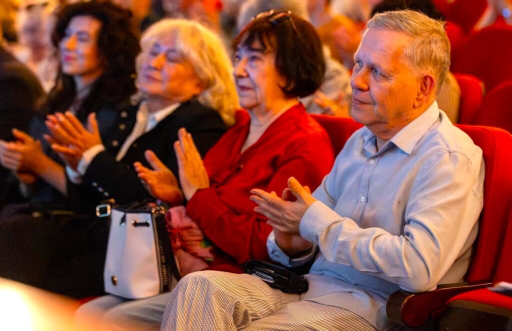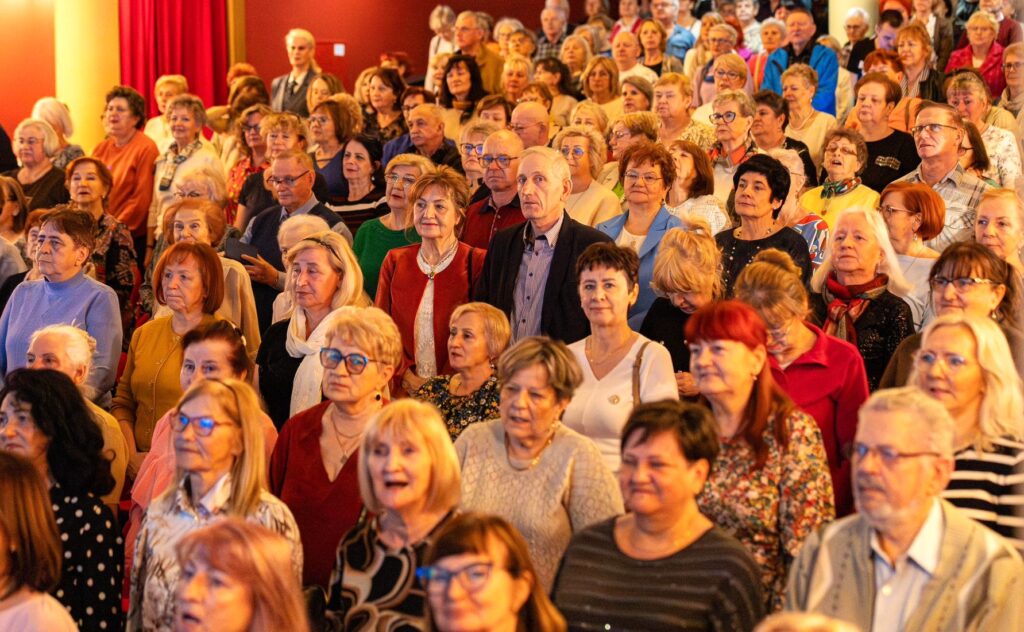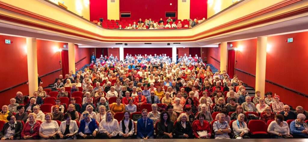 10 razy więcej seniorów, niż na początku działalności! Centrum gwałtownie się rozwija. Liczne grono na uroczystości w teatrze.