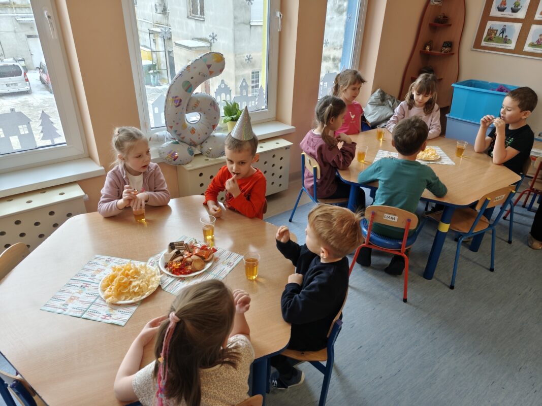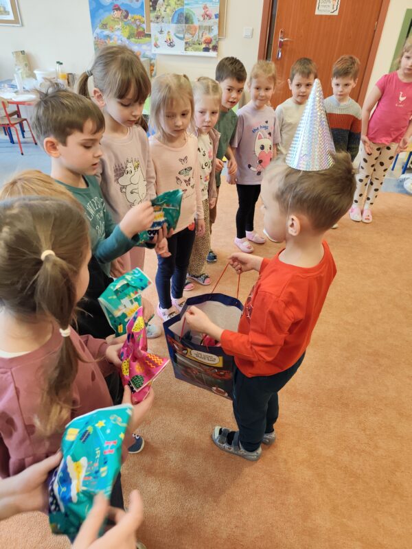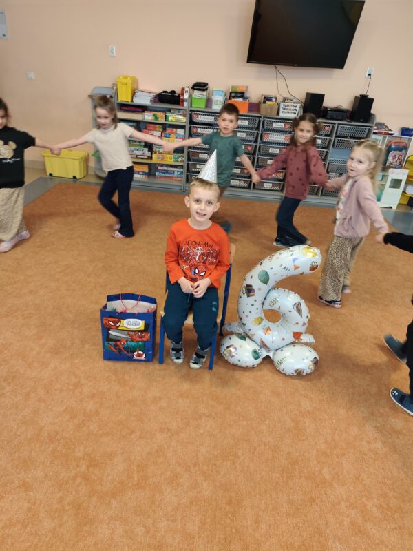 W czwartek swoje 6 urodziny celebrował nasz kolega Krzysztof. Pojawił się w przedszkolu z dużym uśmiechem na twarzy. Nie zabrakło rytualnego odśpiewania sto lat oraz serdecznych życzeń. Krzyś podarował każdemu sekretną paczuszkę z upominkami, a później zaprosił na poczęstunek.