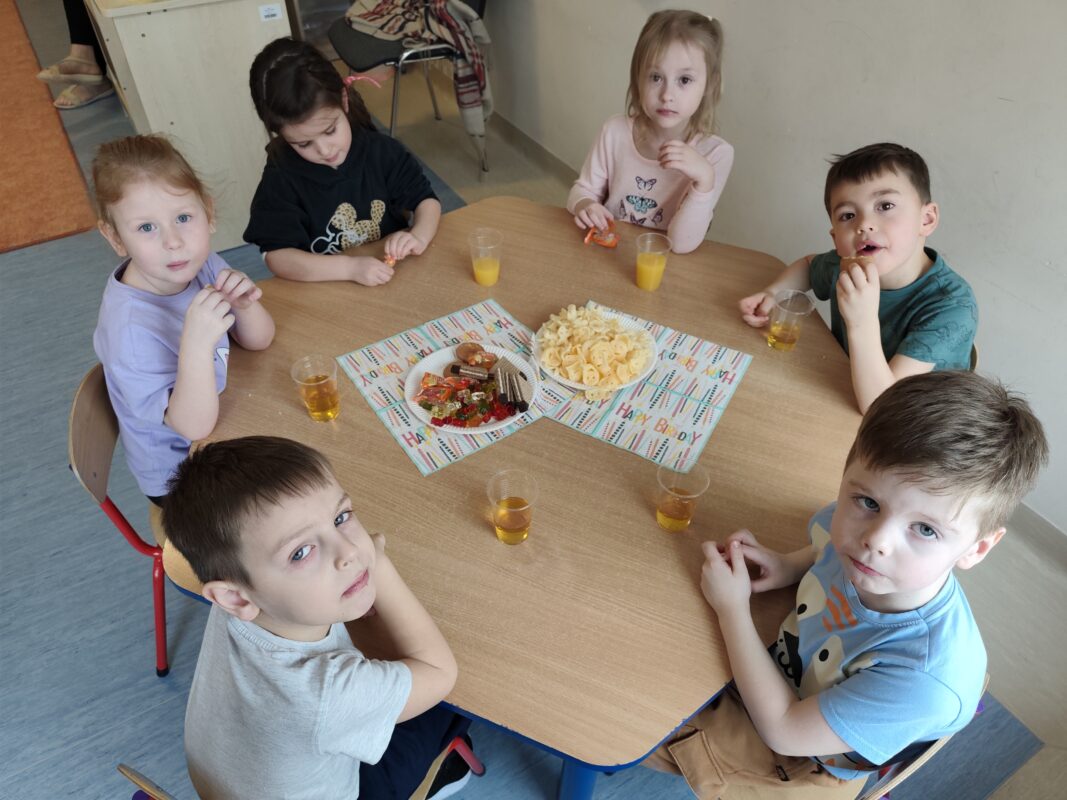 Biszkopty, żelki, prażynki, ciasteczka… nie wiedzieliśmy od czego zacząć. Był to mile spędzony czas, gdyż mogliśmy sobie porozmawiać przy stole, kosztując tych pyszności.