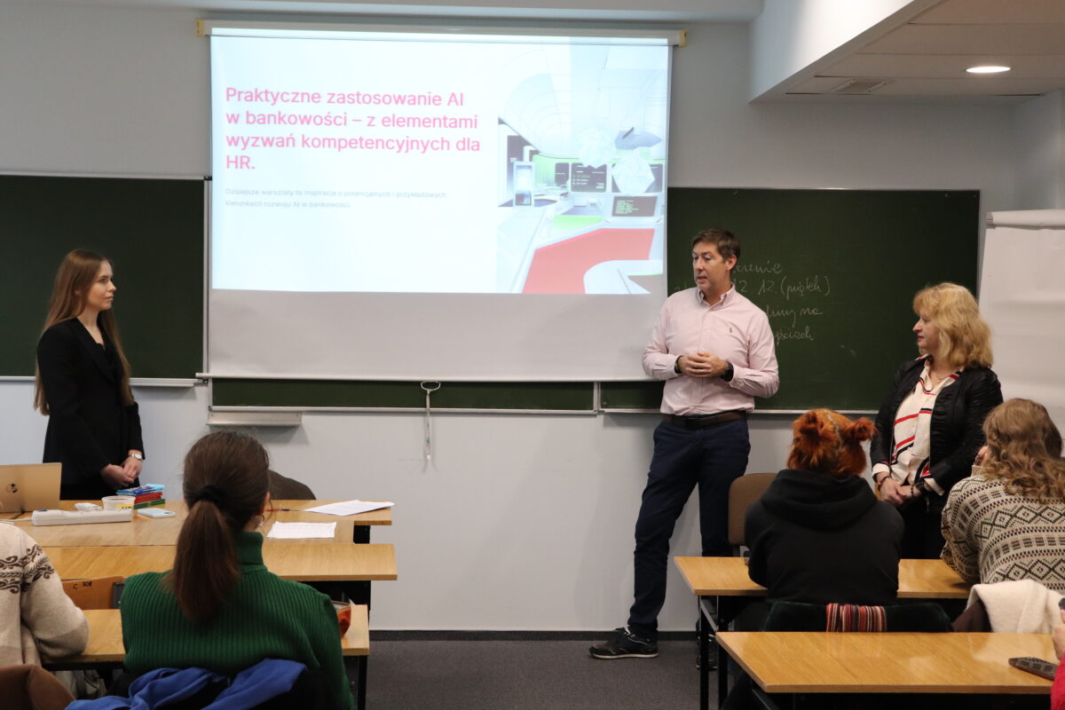 Podczas dzisiejszych zajęć prowadzonych przez dr hab. Annę Pawłowską, prof. UW, studenci Wydziału Zarządzania UW uczestniczyli w wyjątkowym spotkaniu z ekspertami Banku Millennium, poświęconym praktycznym zastosowaniom sztucznej inteligencji w sektorze finansowym.