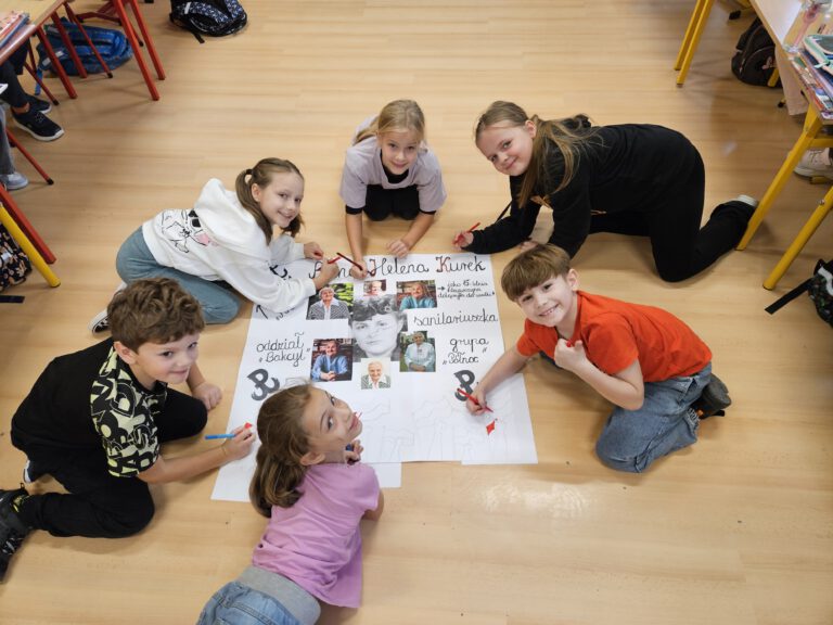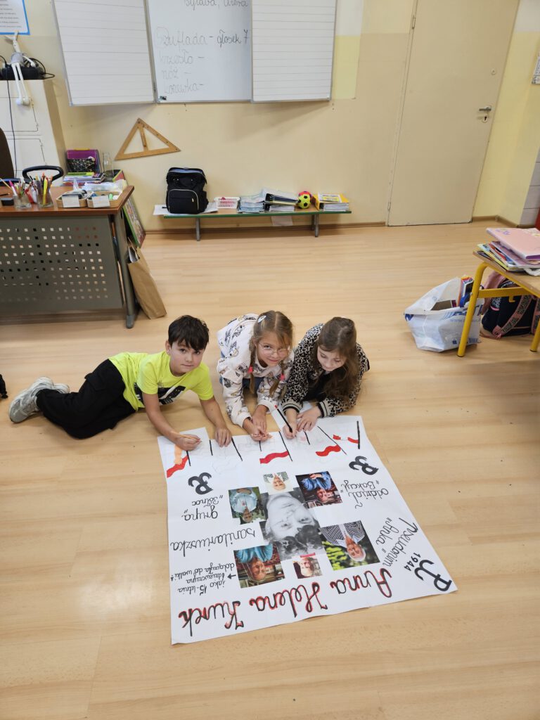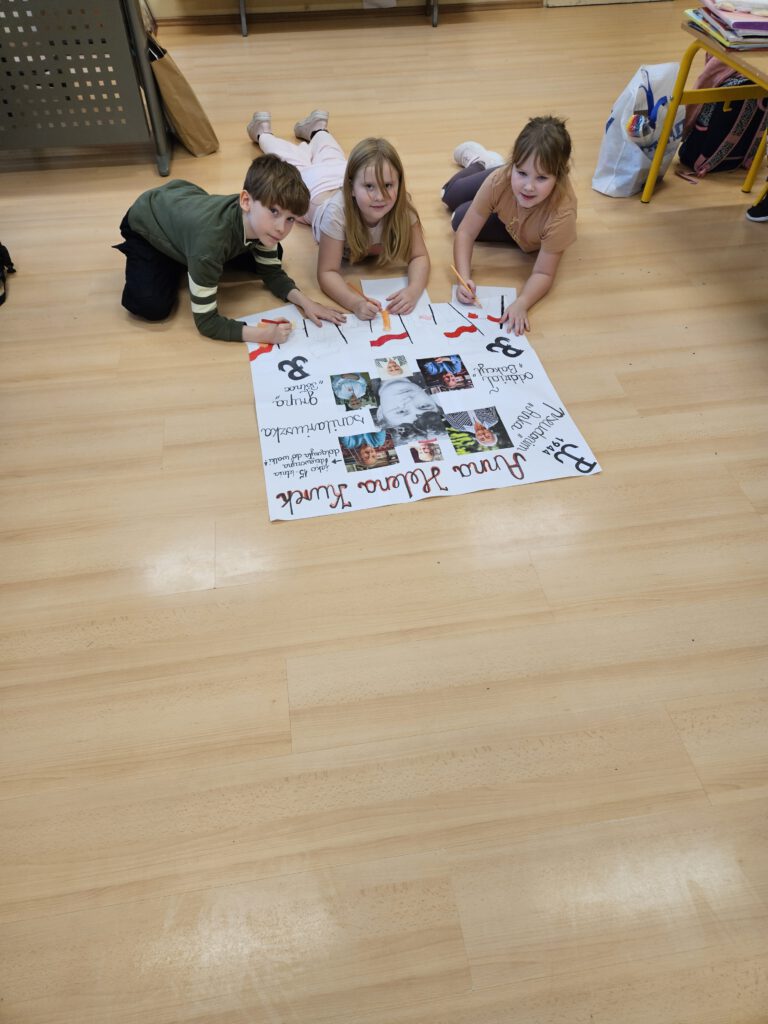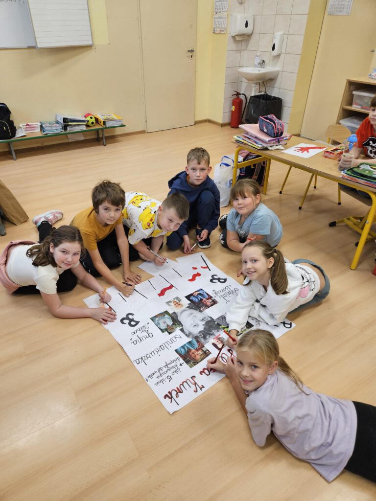 Klasa 2a podczas pracy grupowej BohaterOn – poświęconej Annie, Helenie Kurek.