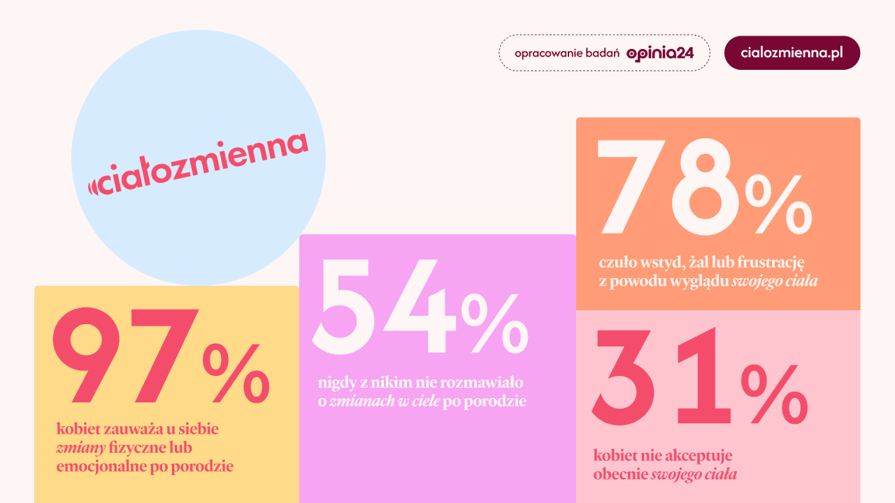 Zmiany w ciele kobiety po ciąży i porodzie to temat, o którym wciąż mówi się za mało. Choć doświadcza ich niemal każda mama – są pomijane, bagatelizowane lub spychane do sfery tabu. Kampania Ciałozmienna powstała, by to zmienić. 26 maja w Dzień Matki na wielkoformatowych ekranach w Warszawie ruszy emisja kampanijnego spotu z ciałozmiennymi kobietami w głównych rolach