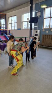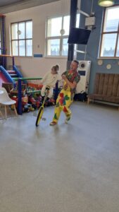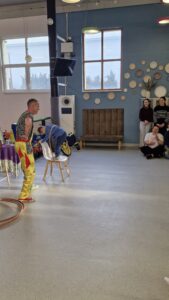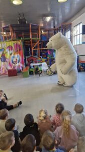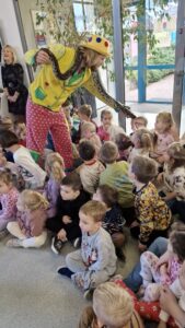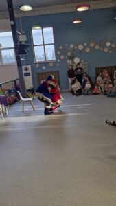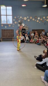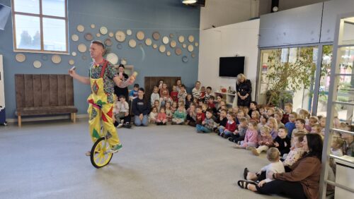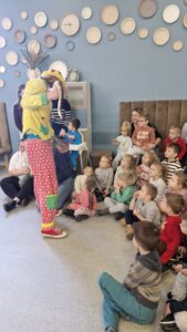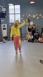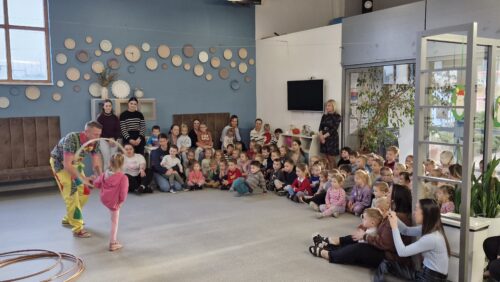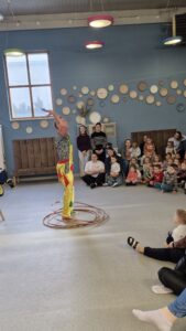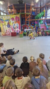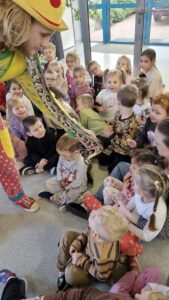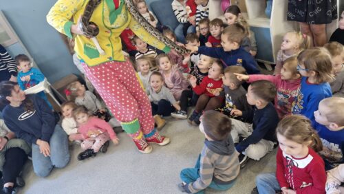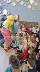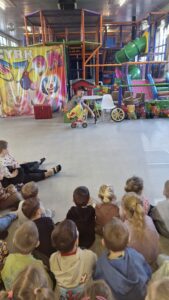 W naszej placówce zagościła prawdziwa cyrkowa magia! Podczas wyjątkowego występu dzieci miały okazję przenieść się do kolorowego świata pełnego śmiechu, muzyki i niezwykłych atrakcji. Artyści zaprezentowali zabawne scenki, efektowne sztuczki oraz popisy, które wzbudziły ogromne emocje i gromkie brawa. Największą euforia sprawiła możliwość wspólnej zabawy i aktywnego udziału dzieci w pokazie. To było niezapomniane spotkanie, pełne uśmiechów i pozytywnej energii, które na długo pozostanie w pamięci wszystkich uczestników. Dziękujemy artystom za wspaniały występ.