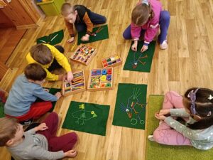 … ptaki, ślady i kreatywność przedszkolaka:) Pod kierunkiem pani Justyny dzieci rozwijają zdolności matematyczne. Idzie im to naprawdę dobrze. Jesteśmy z nich dumni:)