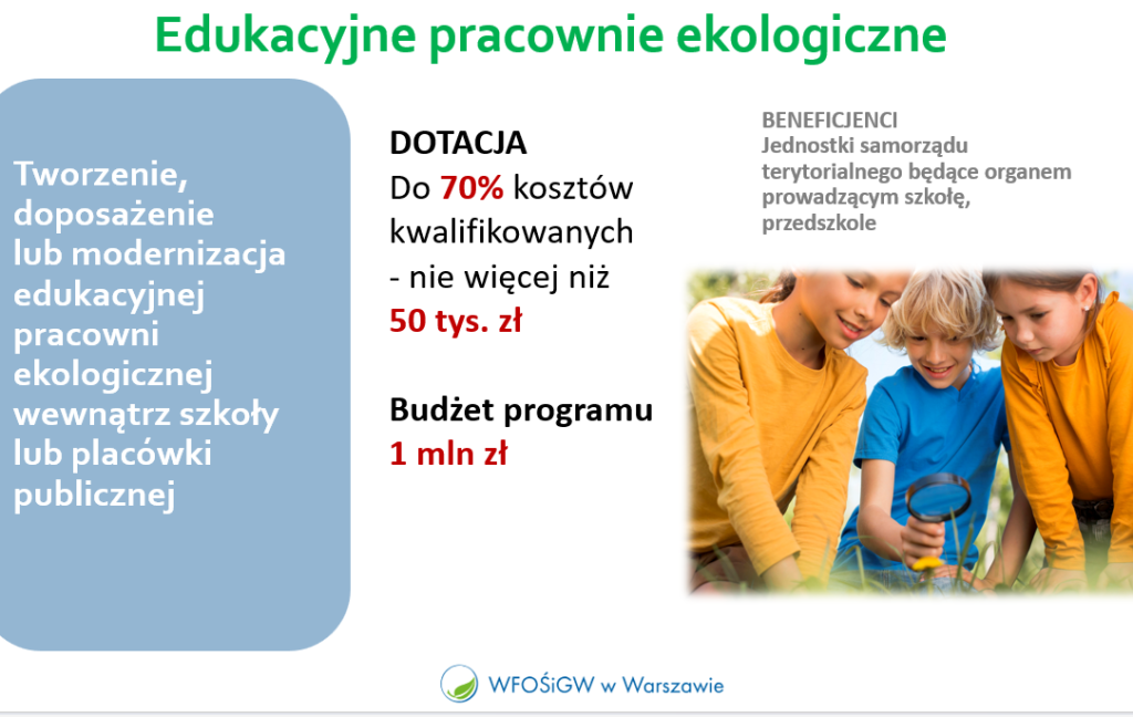 Z okazji Dnia Edukacji Narodowej z dumą podkreślamy, iż troska o edukację i świadomość ekologiczną najmłodszego pokolenia to jeden z filarów misji WFOŚiGW w Warszawie. Dzięki wsparciu naszego Funduszu samorządy prowadzące szkoły i placówki publiczne, mogą realizować ważne inwestycje, od termomodernizacji budynków po wymianę oświetlenia na energooszczędne. Szczególnie dumni jesteśmy jednak z naszych dwóch programów edukacyjnych, które wspierają nauczycieli i uczniów w rozwijaniu wiedzy o ekologii i zrównoważonym rozwoju: