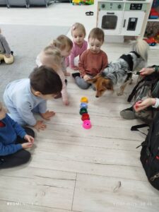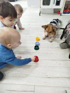 Dogoterapia w żłobku to zajęcia z udziałem psa terapeutycznego, które wspierają rozwój emocjonalny, społeczny i ruchowy dzieci. Poprzez zabawę, głaskanie i proste ćwiczenia maluchy uczą się empatii, koncentracji oraz zasad bezpiecznego kontaktu ze zwierzęciem.