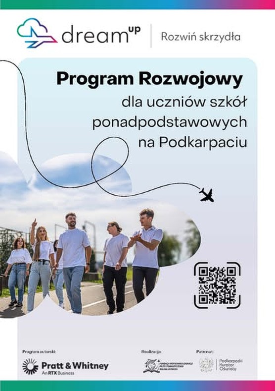 Kuratorium Oświaty w Rzeszowie informuje, iż rusza druga edycja programu rozwojowego "Dream Up - rozwiń skrzydła", który powstał z inicjatywy firmy Pratt & Whitney w Rzeszowie.