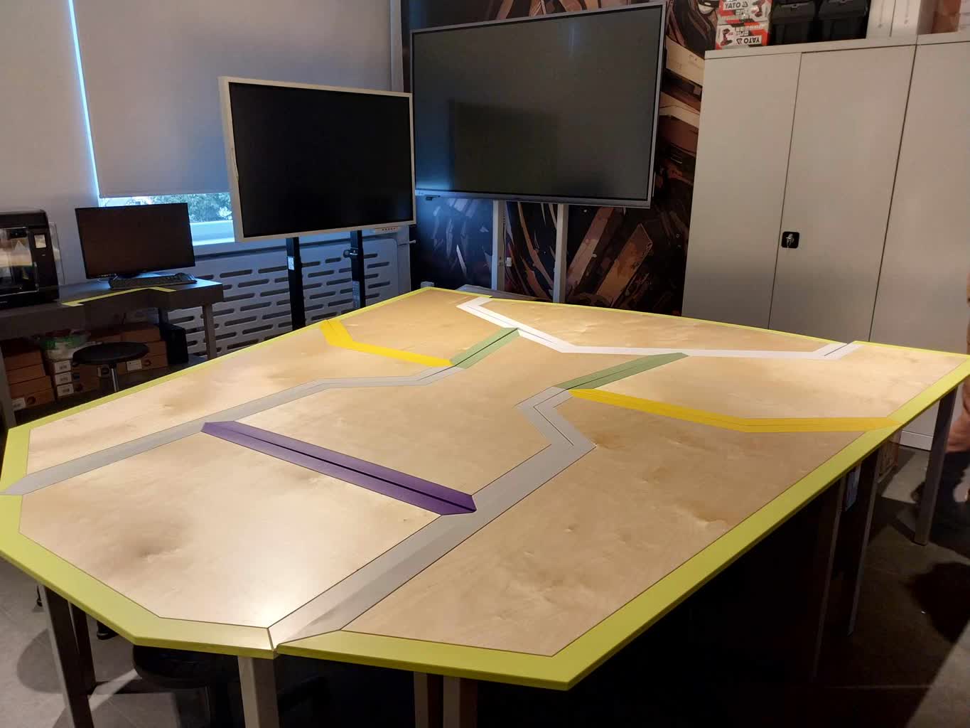 – Najfajniejszym elementem, który można zobaczyć w pracowni, jest stół, który składa się z różnych elementów, tworząc twarz robota – mówi Anna Wójcik Dąbrowska. – Po rozłożeniu mamy kilkanaście stołów, natomiast po złożeniu wszystkich tych komponentów dają one nam jeden duży stół. Te stoliki są specjalnie oznaczone różnymi kolorami. Mamy również oznaczenia w stolikach przyściennych – kolory. Czyli wiemy, który element po przestawieniu możemy dopasować do kolejnego stanowiska komputerowego.