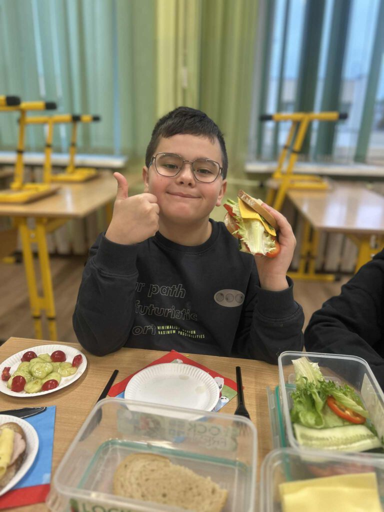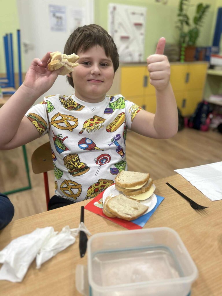 W październiku uczniowie klasy 2d obchodzili Dzień Chleba. Dzieci obejrzały film edukacyjny, z którego dowiedziały się, dlaczego pieczywo jest ważne w naszej diecie. Następnie przygotowały zdrowe, kolorowe kanapki z warzywami. Wszyscy z zaangażowaniem i euforią tworzyli swoje smaczne dzieła, pamiętając o zasadach zdrowego odżywiania.