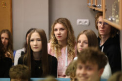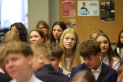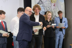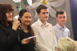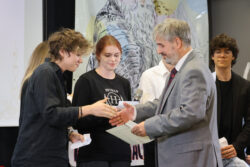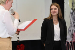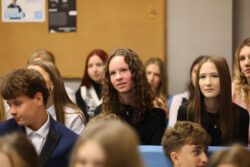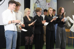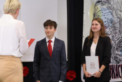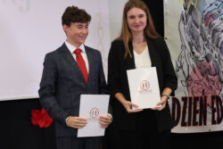 Kontynuując tradycję zapoczątkowaną przez poprzedniego Dyrektora, pana Pawła Dobrowolskiego, Pani Wciseł doceniła również działalność uczniów i wręczyła okolicznościowe nagrody – Martynie Piekarskiej i Nikodemowi Szali-Jagielle, przedstawicielom Sejmiku Uczniowskiego, niezmiernie zaangażowanym w ożywianie życia szkolnego różnymi inicjatywami.