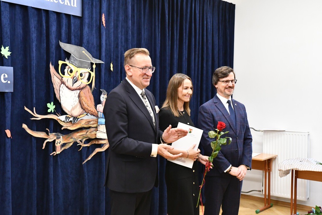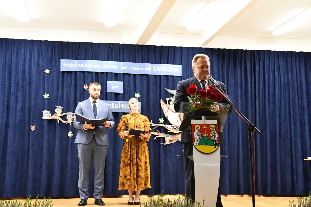 – Dziś honorujemy Państwa, najlepszych z najlepszych z suwalskich szkół. Jesteście Państwo reprezentantami setek zaangażowanych pedagogów i pracowników administracji i obsługi, których wysiłek jest najważniejszy dla sukcesu naszej edukacji. Wszystkim Państwu, którzy wykonują swą pracę, składam dziś najserdeczniejsze życzenia. Niech Dzień Edukacji Narodowej będzie momentem, w którym możemy się na chwilę zatrzymać, pomyśleć o sukcesach i pomarzyć o kolejnych osiągnięciach – mówił Roman Rynkowski, zastępca Prezydenta Suwałk – To Państwo są, zaraz po rodzicach uczniów, osobami mającymi największy wpływ na kształtowanie osobowości i systemu wartości suwalskich dzieci i młodzieży. Dlatego Państwa misja jest tak ważna, a zarazem odpowiedzialna, wymaga poświęcenia, cierpliwości ogromnej pracy – dodał Rynkowski.