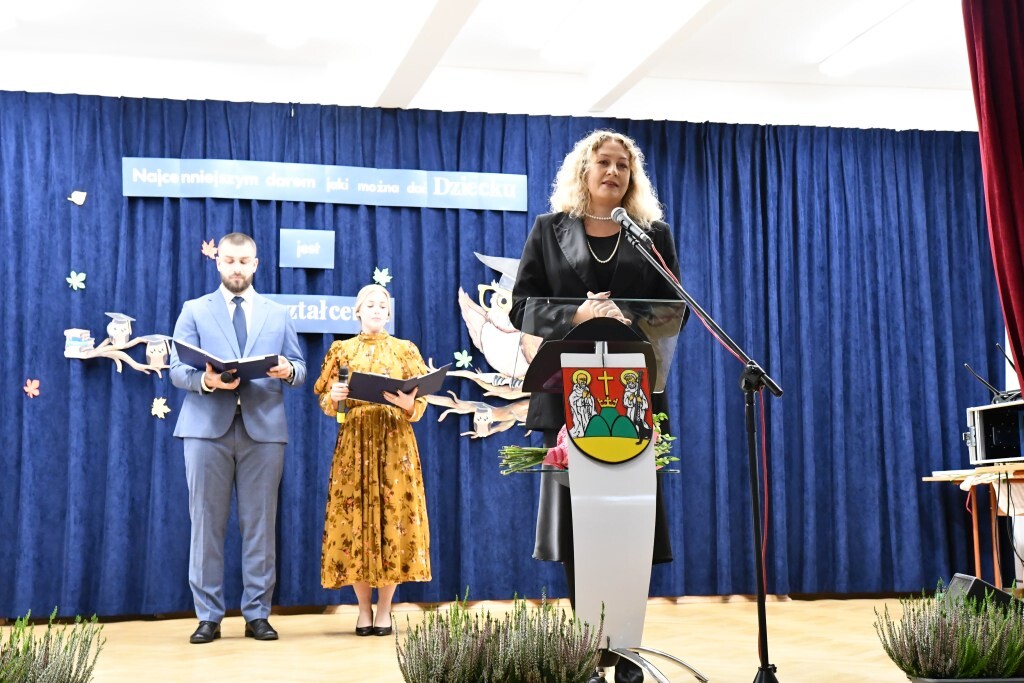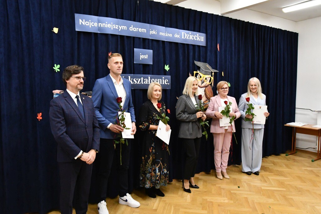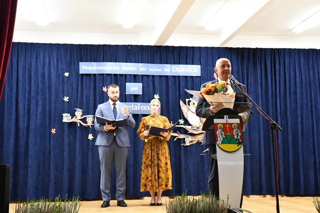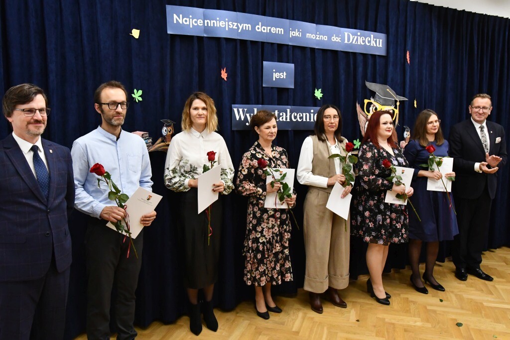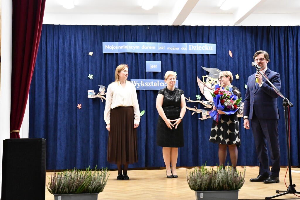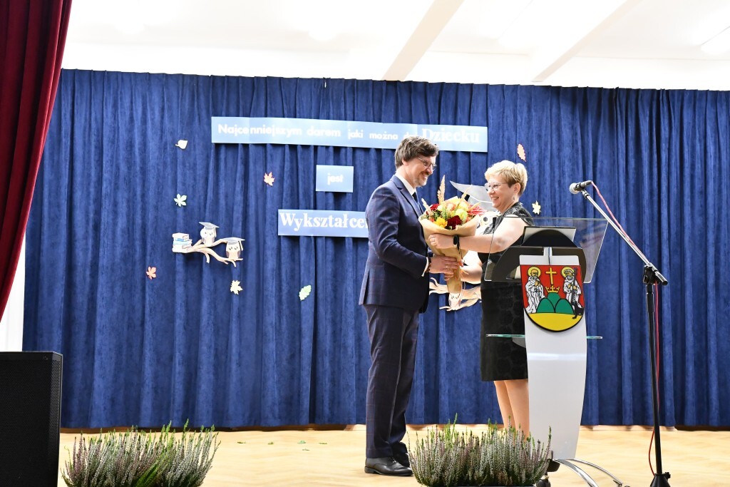 Były okolicznościowe przemówienia, podziękowania za trud wychowania uczniów i kwiaty.