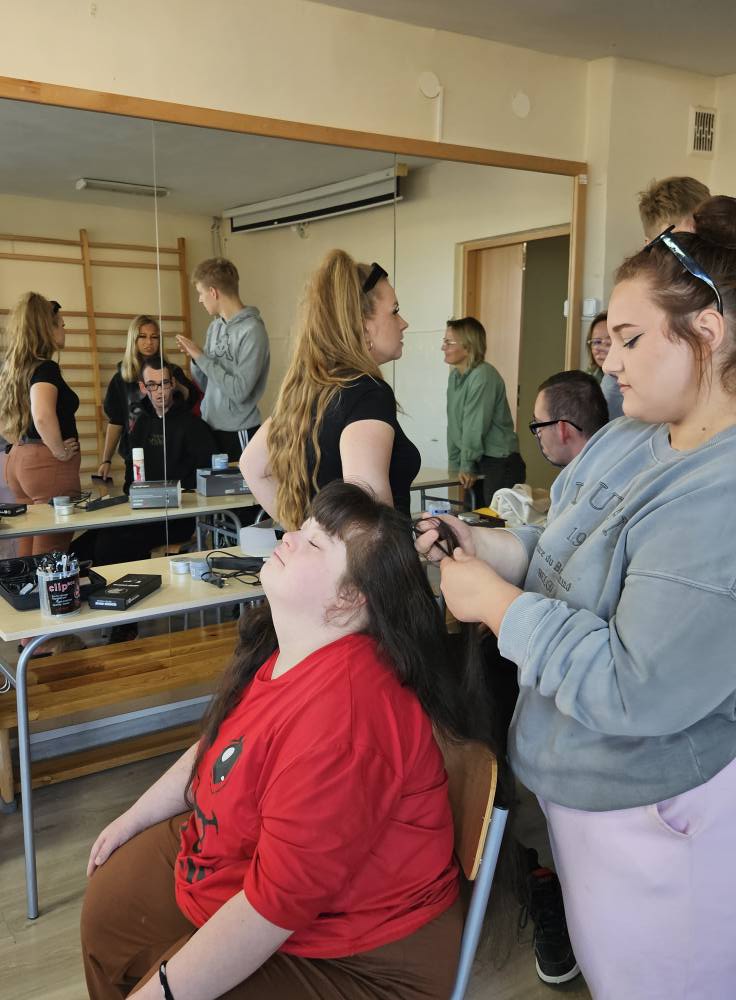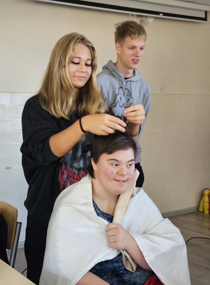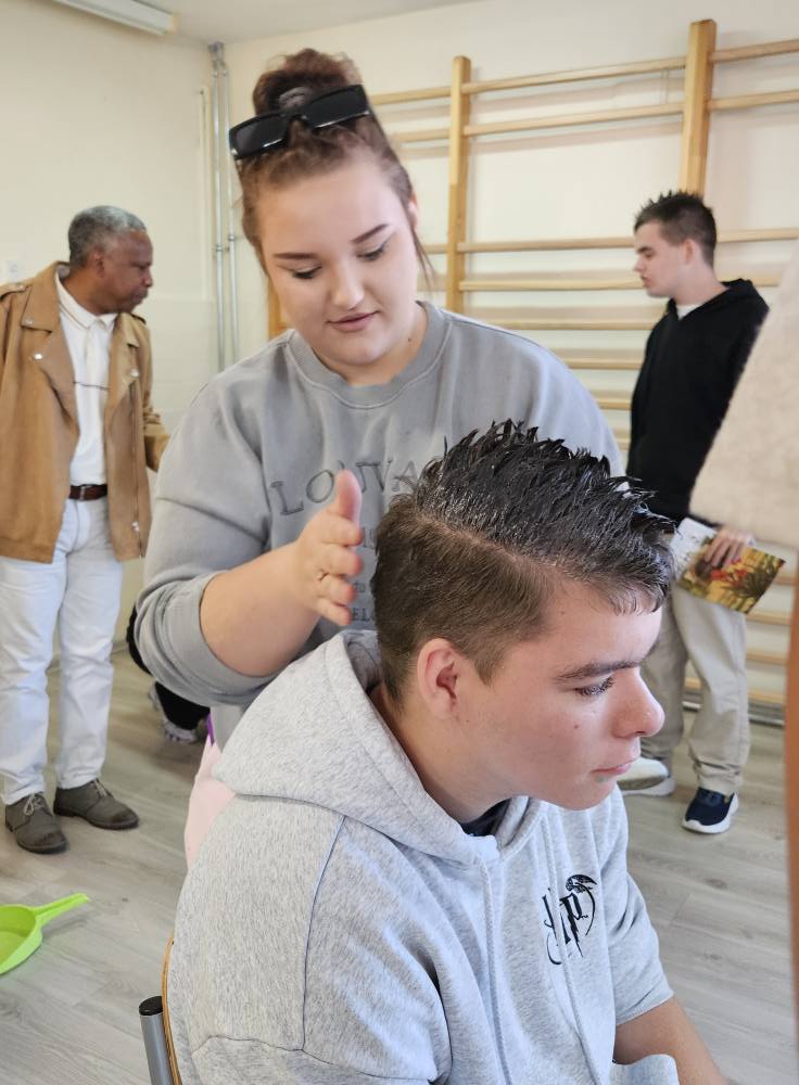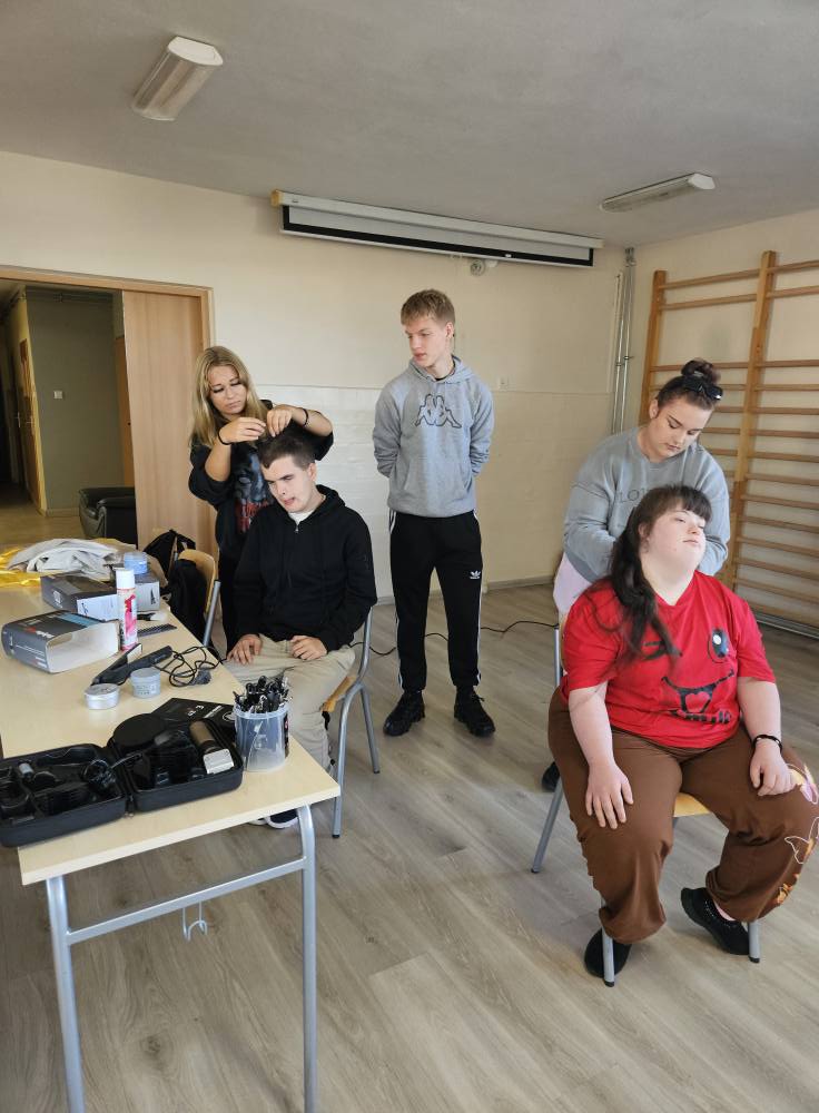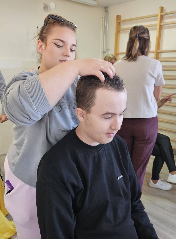 Z okazji Dnia Fryzjera uczniowie klasy III BF kierunku fryzjerstwo odwiedzili uczniów szkoły przysposabiającej do pracy. Celem wizyty było przybliżenie młodszym kolegom i koleżankom specyfiki zawodu fryzjera oraz zaprezentowanie swoich umiejętności praktycznych.