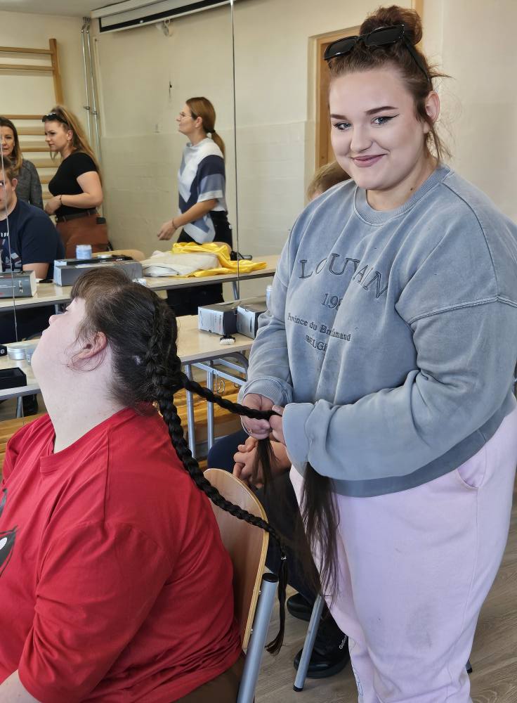 Podczas spotkania uczniowie opowiedzieli o nauce na swoim kierunku, o tym, jak wygląda praca fryzjera, z jakich narzędzi korzystają na co dzień i jak istotny jest kontakt z klientem. Następnie zaprosili uczestników do wspólnej zabawy z fryzurami – wykonując czesania, stylizacje oraz męskie cięcia.