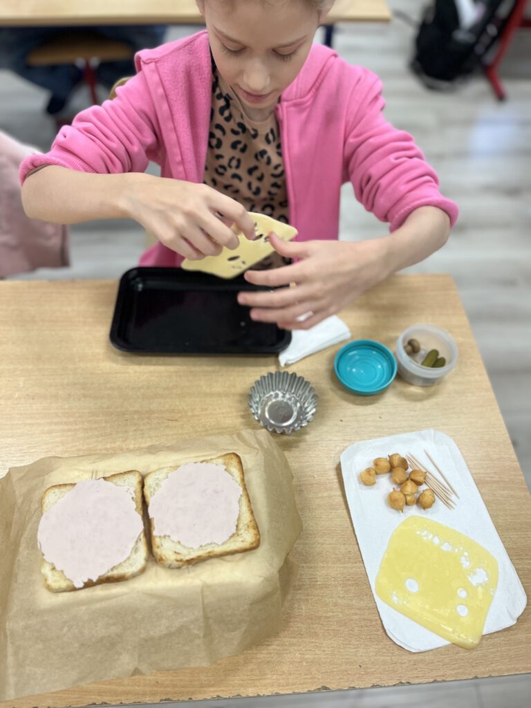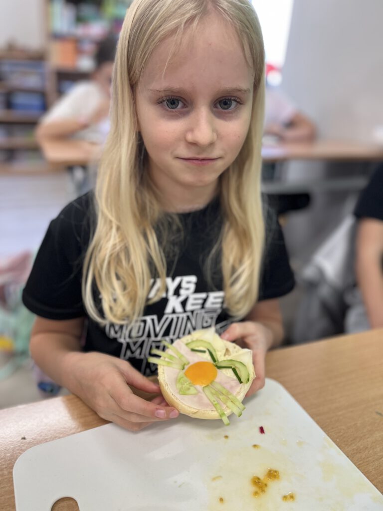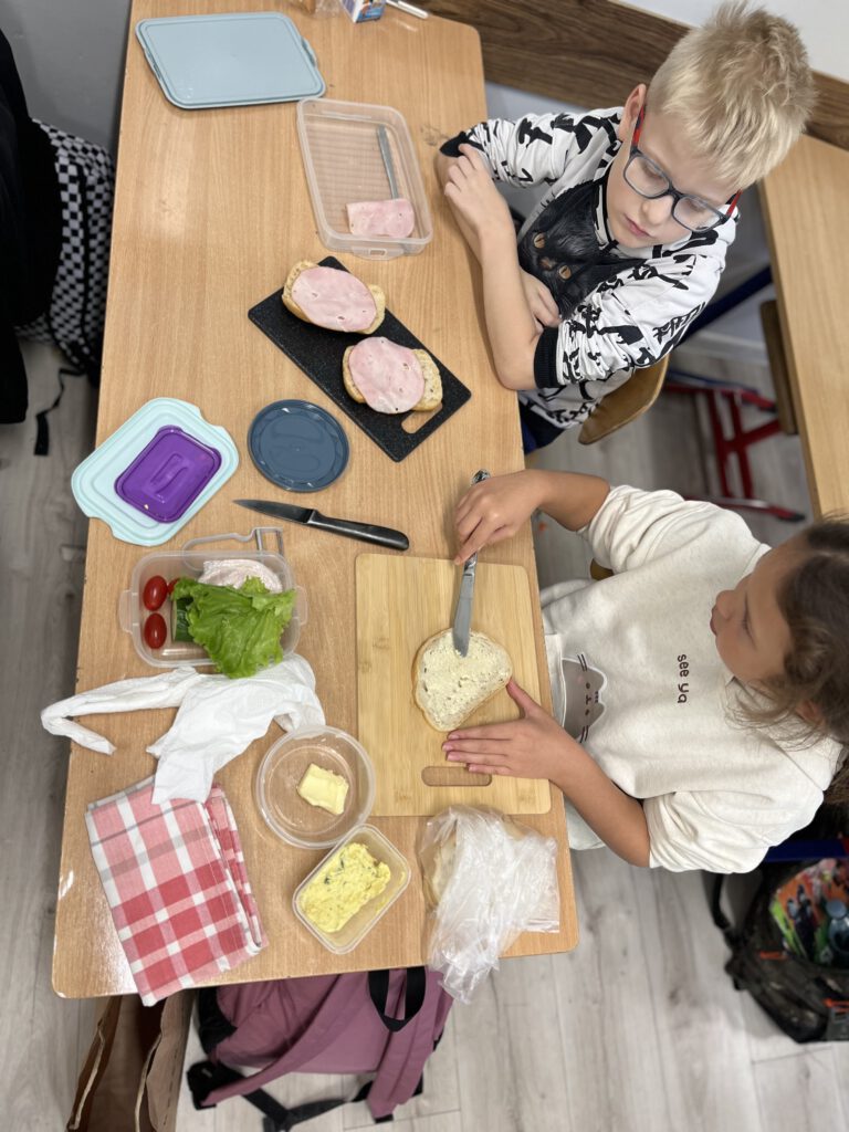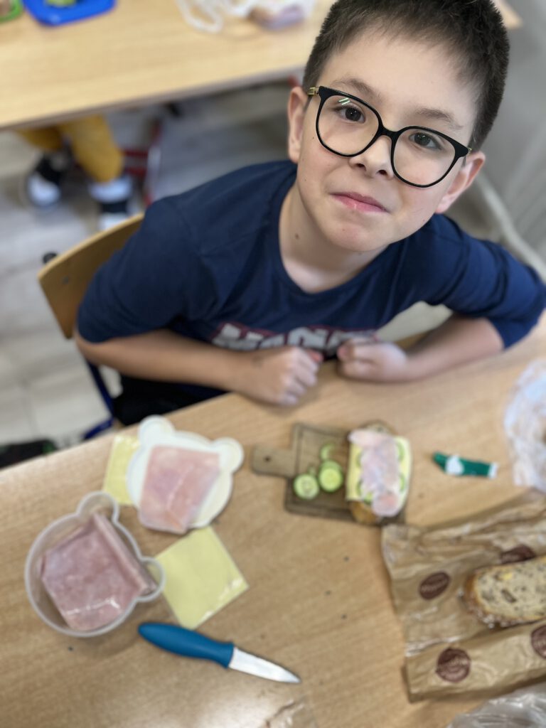 Wykonaliśmy zdrowe, kolorowe kanapki ćwiczyliśmy również umiejętność krojenia i posługiwania się nożem.