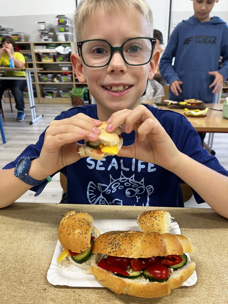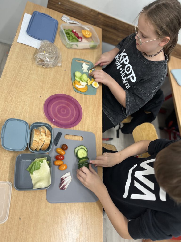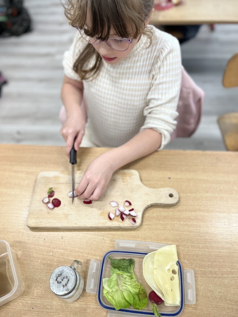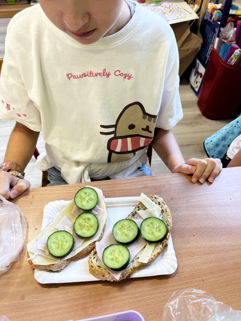 Wykonaliśmy zdrowe, kolorowe kanapki ćwiczyliśmy również umiejętność krojenia i posługiwania się nożem.