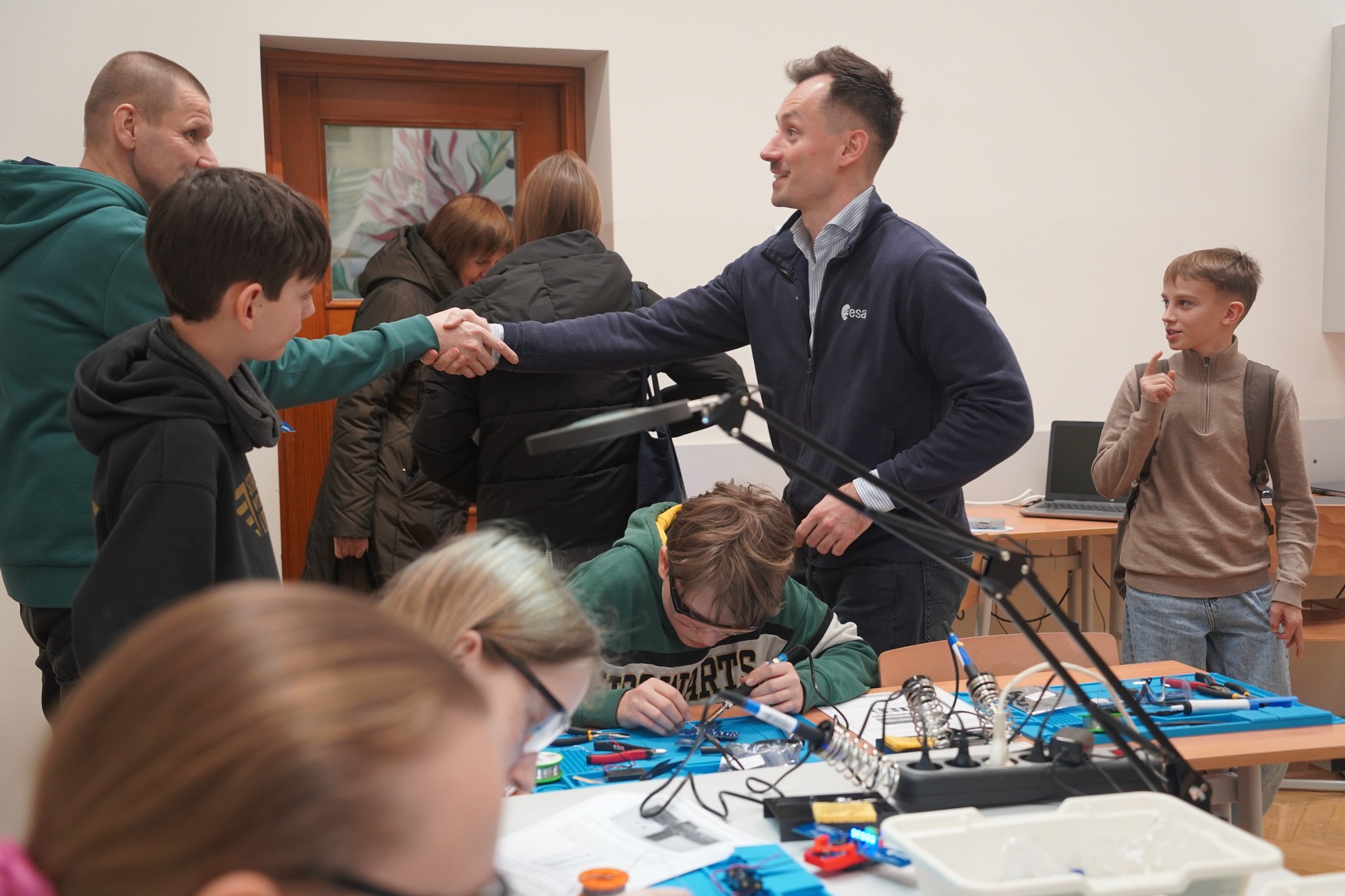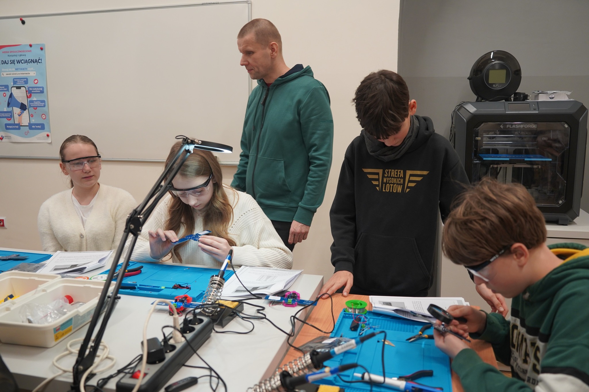 Pokaz udowodnił, iż nauka może być fascynująca, pełna euforii i… nie zważa na grawitację. Dodatkowo Karol Sienkiewicz, LL.M., przybliżył uczniom działalność Europejskiej Agencji Kosmicznej (ESA), a dzięki wsparciu POLSA – Polskiej Agencji Kosmicznej – młodzież mogła pracować z zestawem edukacyjnym małych satelitów „Klucz do Kosmosu”, który wzbudził ogromne zainteresowanie.