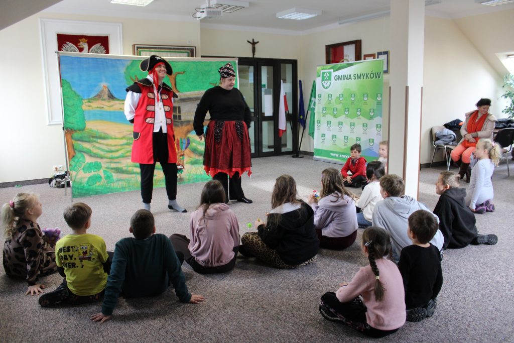 Podczas pierwszego dnia ferii, dzieci obejrzały przedstawienie teatralne, pt. „Na końcu świata… Przygody Misia i Kacpra pirata”, które rozpoczęło się o godzinie 11:00. Spektakl dostarczył młodym widzom wielu emocji i wywołał mnóstwo uśmiechów. Tuż po nim, o godzinie 12:00, odbyły się animacje pirackie, podczas których nie zabrakło zabaw ruchowych, śmiechu oraz wspólnej integracji.