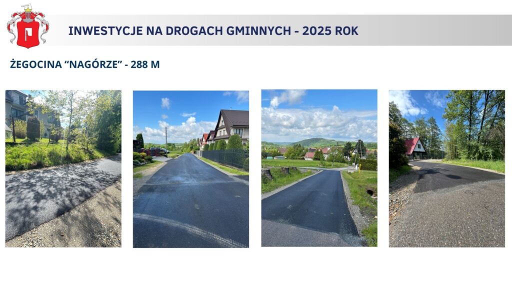 W listopadzie odebrano kolejną istotną inwestycję: remont drogi gminnej nr 580402K, tzw. „Cmentarnej”. Na realizację zadania gmina otrzymała dofinansowanie w wysokości 298 tys. zł z Rządowego Funduszu Rozwoju Dróg. Droga ma duże znaczenie dla mieszkańców, ponieważ prowadzi do cmentarza parafialnego oraz stadionu KS Beskid, a także stanowi alternatywny dojazd do Nowej Wsi i Bełdna. Łączny koszt inwestycji wyniósł 469 201,95 zł, w tym: 298 025,00 zł – środki z Rządowego Funduszu Rozwoju Dróg, 171 176,95 zł – środki własne gminy.