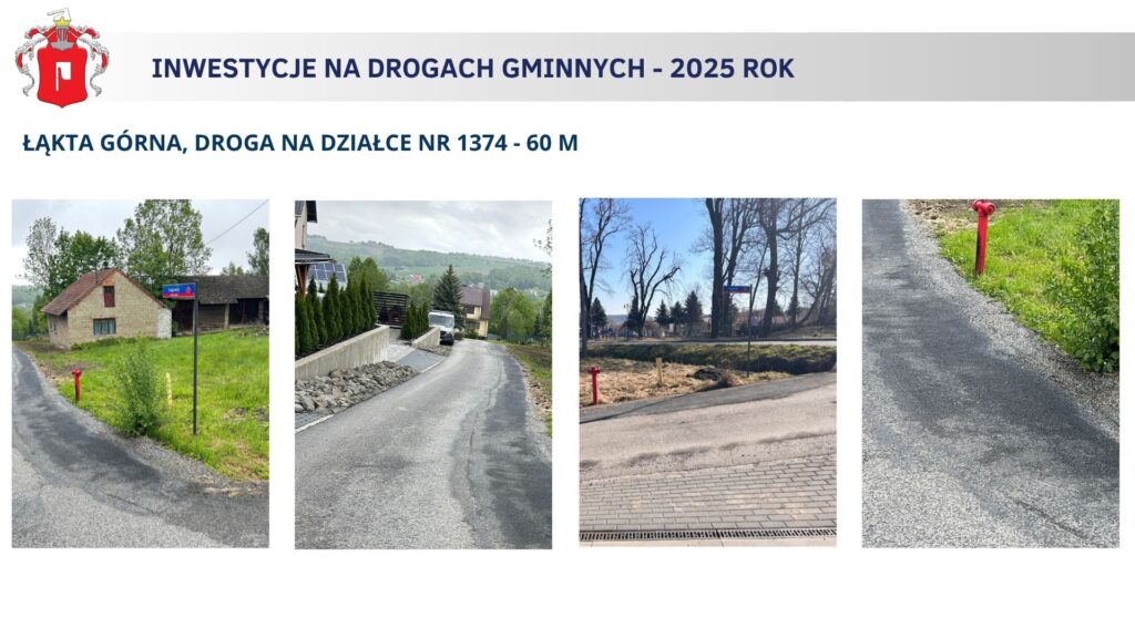 Łąkta Górna, drogi na działkach numer: 1154 o długości 448 m, 1106 i 1375/3 o łącznej długości 176 m, 1374 – 60 m.