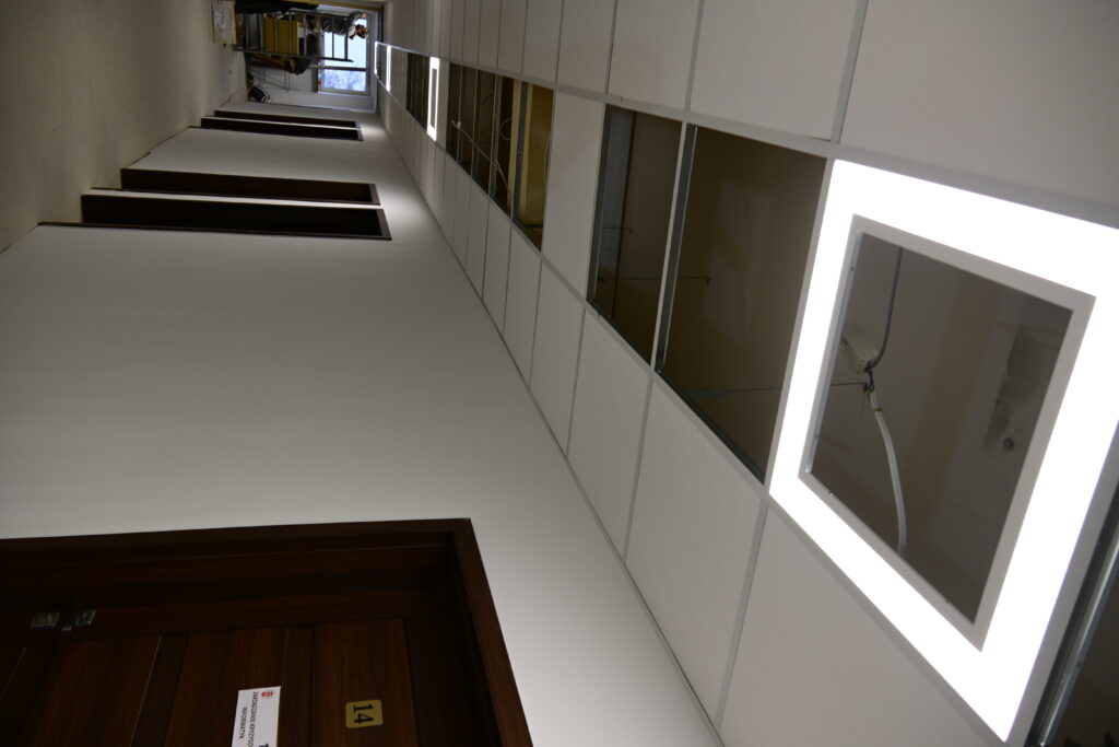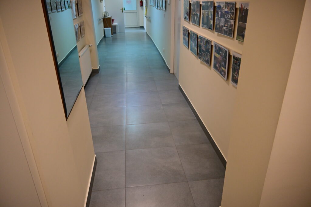 Zakres inwestycji obejmował wymianę posadzki na korytarzach oraz w pomieszczeniach przyległych. Przeprowadzone prace znacząco wpłynęły na poprawę stanu technicznego oraz funkcjonalności użytkowanej przestrzeni.