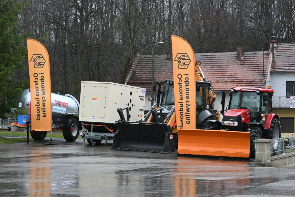 - przyczepa – cysterna do transportu wody pitnej o pojemności 5000 litrów, umożliwiającą dostarczanie wody mieszkańcom w przypadku przerw w dostawie.