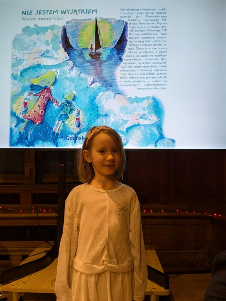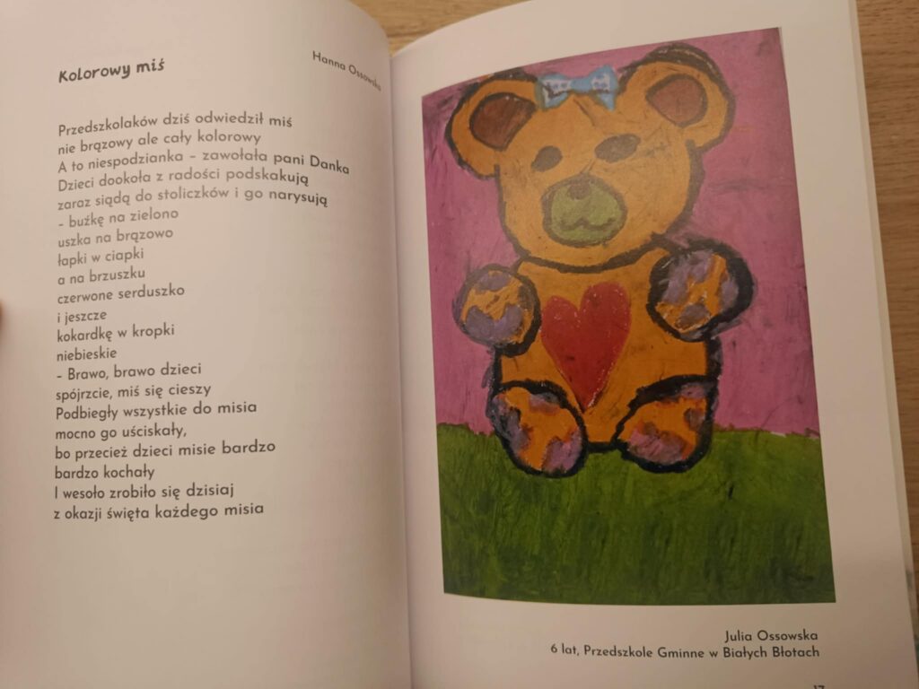Julia Ossowska z grupy C2 „Elfy” wykonała przepiękną ilustrację do wiersza napisanego przez swoją babcię – panią Hannę Ossowską, który znalazł się w najnowszym tomiku wierszy wydanym przez Polskie Towarzystwo Terapeutyczne (PTP) w Gdańsku, pt. „Nie jesteś wyjątkiem”. Jesteśmy bardzo dumni z obu Pań i gratulujemy zarówno talentu pisarskiego jak i plastycznego. Liczymy na postanie kolejnych utworów i wyjątkowych prac.
