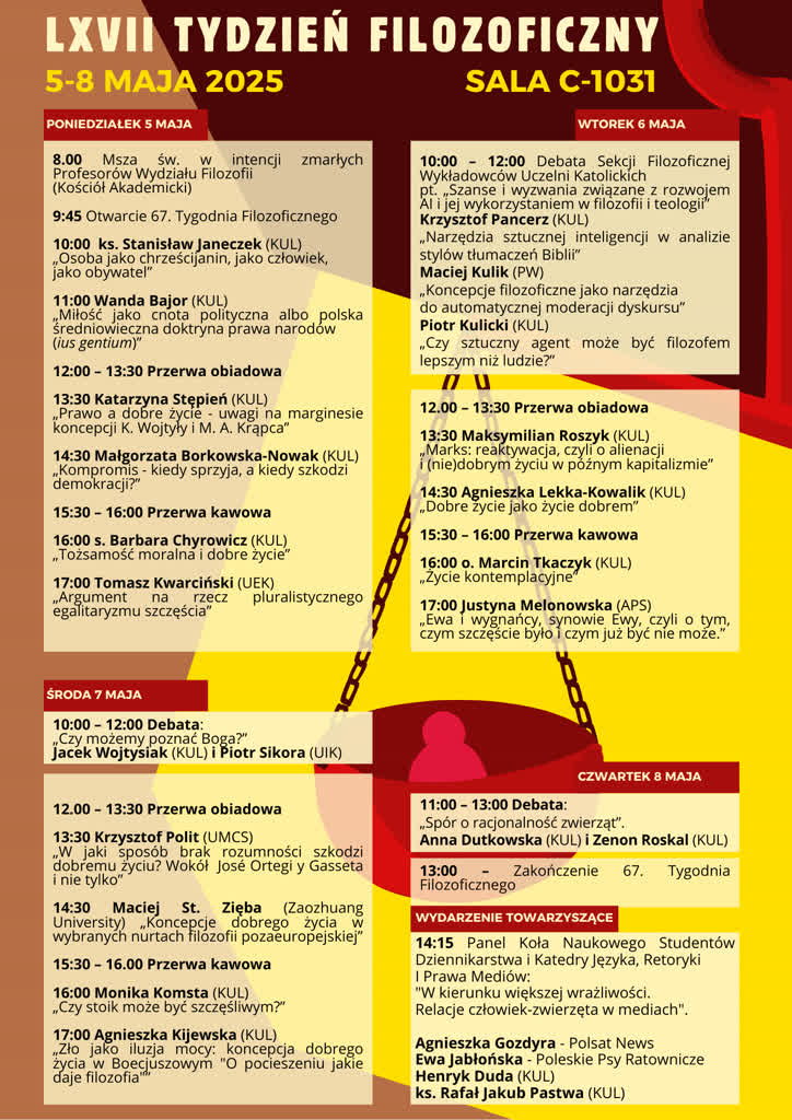 Tydzień Filozoficzny rozpocznie się o 9:45 na Katolickim Uniwersytecie Lubelskim w Collegium Jana Pawła II (sala C-1031).