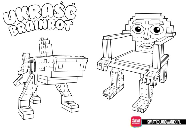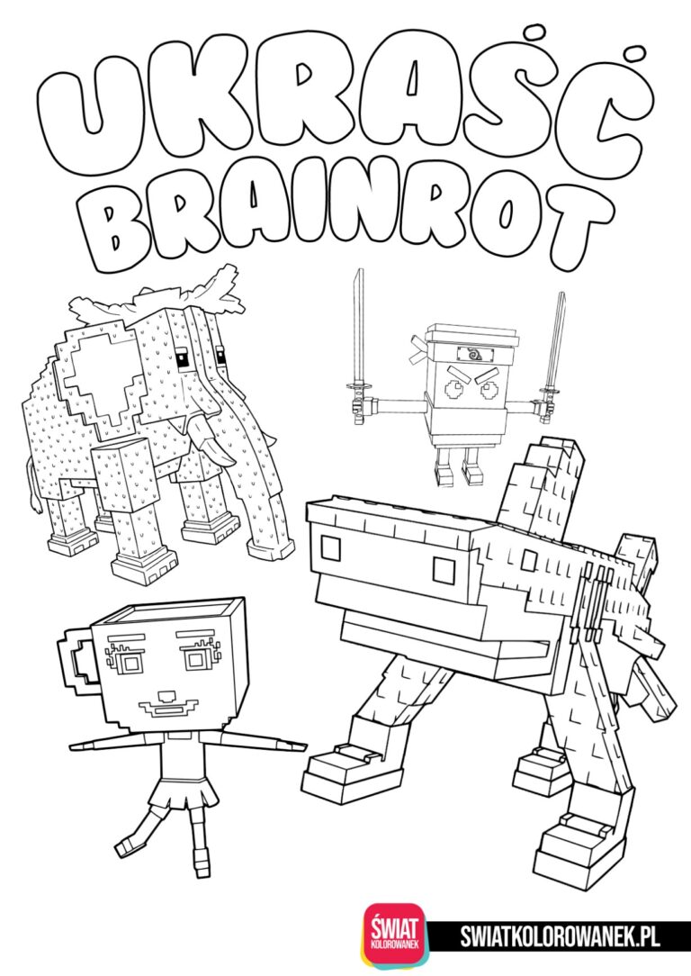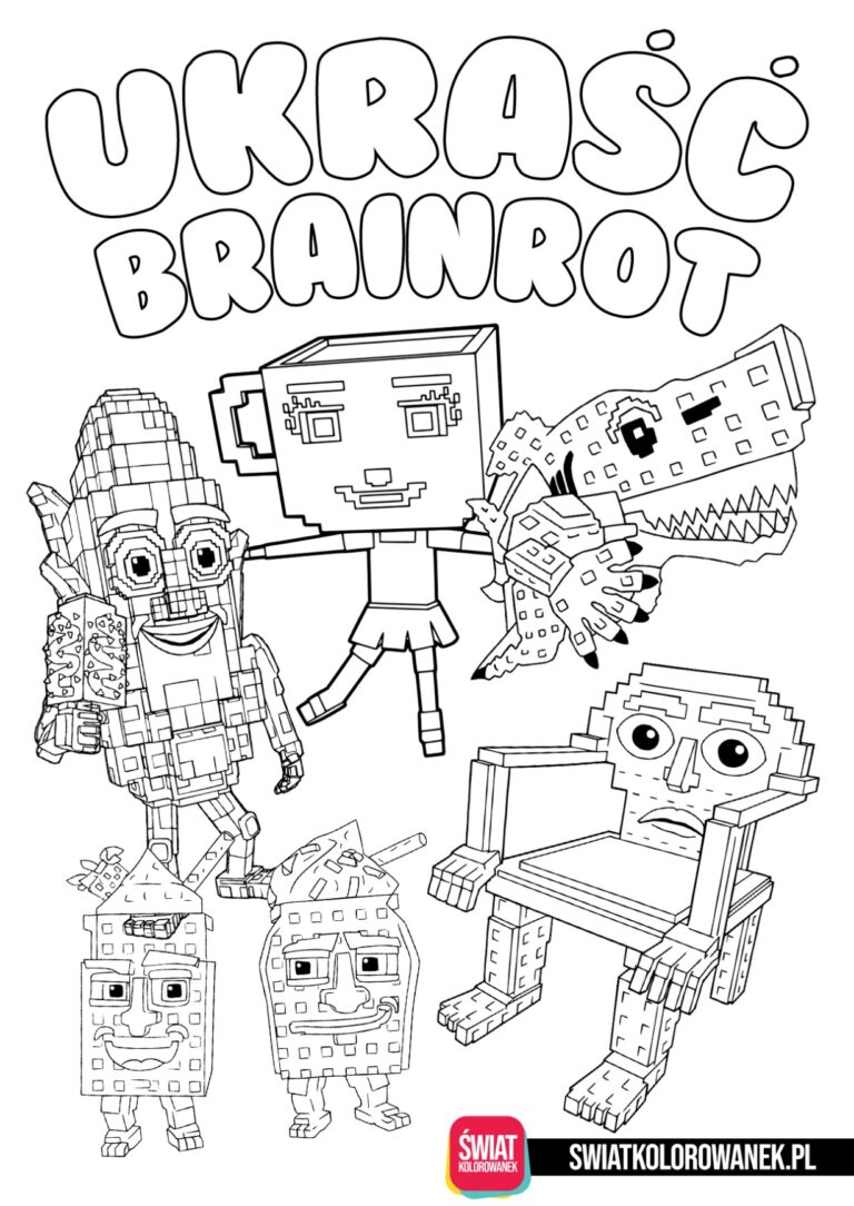Kolorowanki Ukraść Brainrot (w oryginalnym brzmieniu Still a Brainrot) to prawdziwa gratka dla wszystkich dzieci, które uwielbiają tą niezwykle popularną grę na platformie Roblox. Przed Wami kolekcja 70 darmowych kolorowanek inspirowanych postaciami z gry Ukraść Brainrot. Wszystkie postacie Brainrotów, które tutaj znajdziecie zostały przez nas przygotowane z najwyższą starannością i dbałością o detale aby maksymalnie przypominały te, które spotkacie w grze. Jesteśmy pewni, iż znajdzie się tu coś zarówno dla młodszych dzieci jak i nieco starszych w wieku szkolnym. Wszystkie malowanki Steal a Brainrot możesz pobrać za darmo na komputer, tablet lub telefon, a następnie wydrukować na domowej drukarce i pokolorować, kiedy tylko najdzie Cię na to ochota.