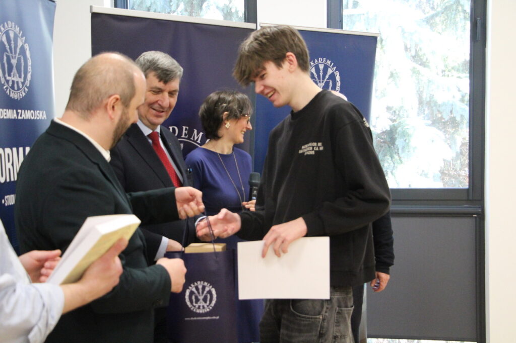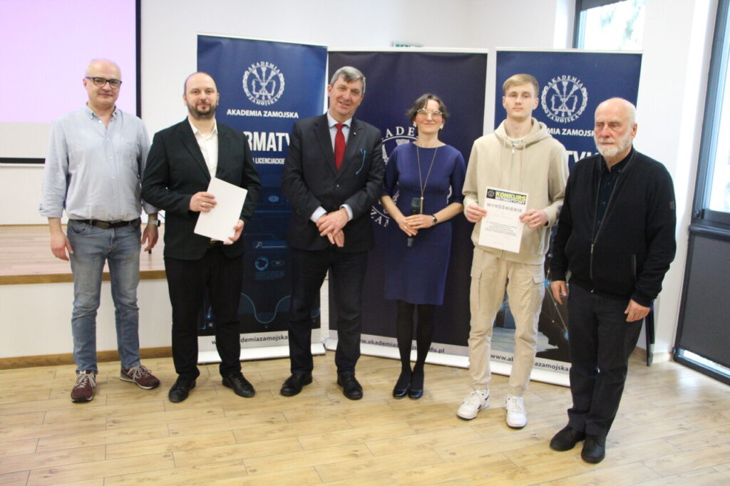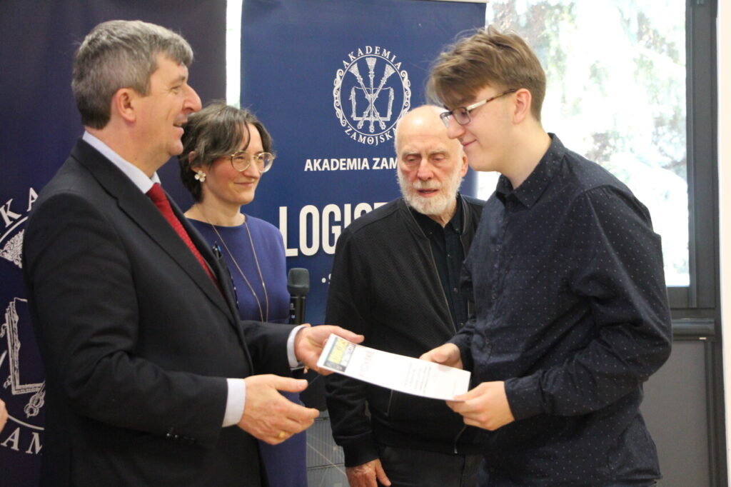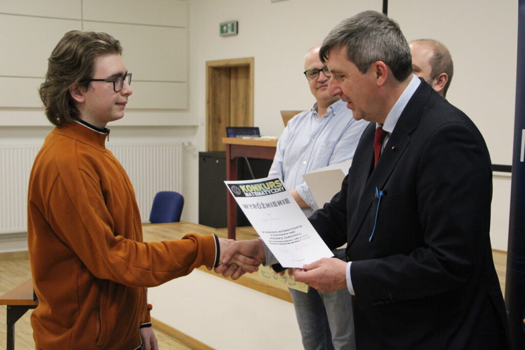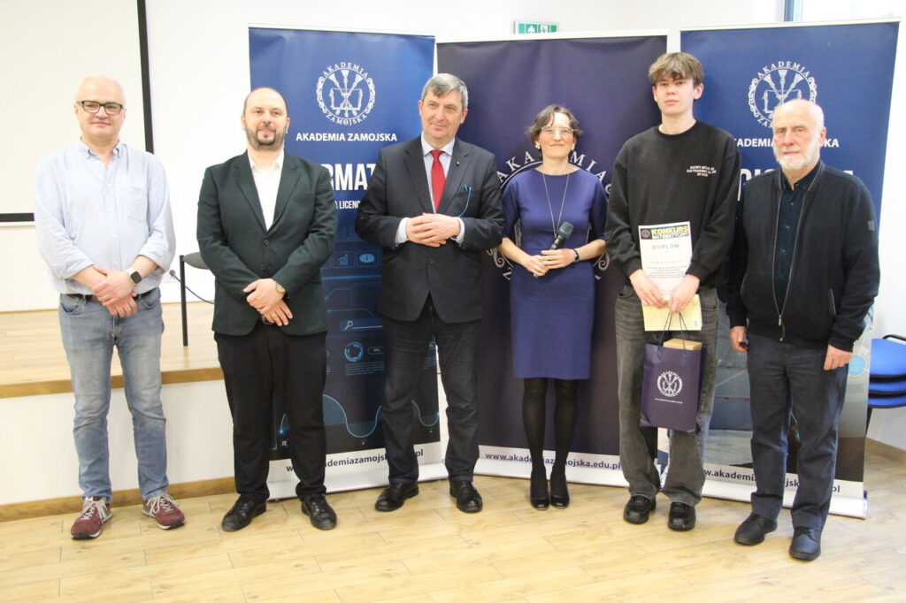 Trzej laureaci konkursu, którzy zdobyli największą liczbę punktów uhonorowanych zostanie nagrodami i dyplomami, natomiast finaliści wyróżnieni – dyplomy oraz upominki od Oddziału Lubelskiego Polskiego Towarzystwa Matematycznego. Nagrody laureatom i wyróżnionym uczestnikom Konkursu wręczali: rektor Akademii Zamojskiej dr hab. Paweł Skrzydlewski, prof. AZ, dziekan Wydziału Techniczno – Informatycznego AZ i dyrektor Instytutu Informatyki AZ dr inż. Paweł Prokop, prezes Lubelskiego Oddziału Polskiego Towarzystwa Matematycznego dr hab. Mariusz Bieniek, prof.ucz. oraz dr hab. Witold Mozgawa i dr Ewa Szlachtowska z Instytutu Informatyki AZ.