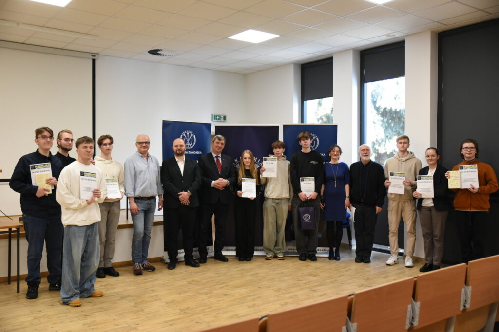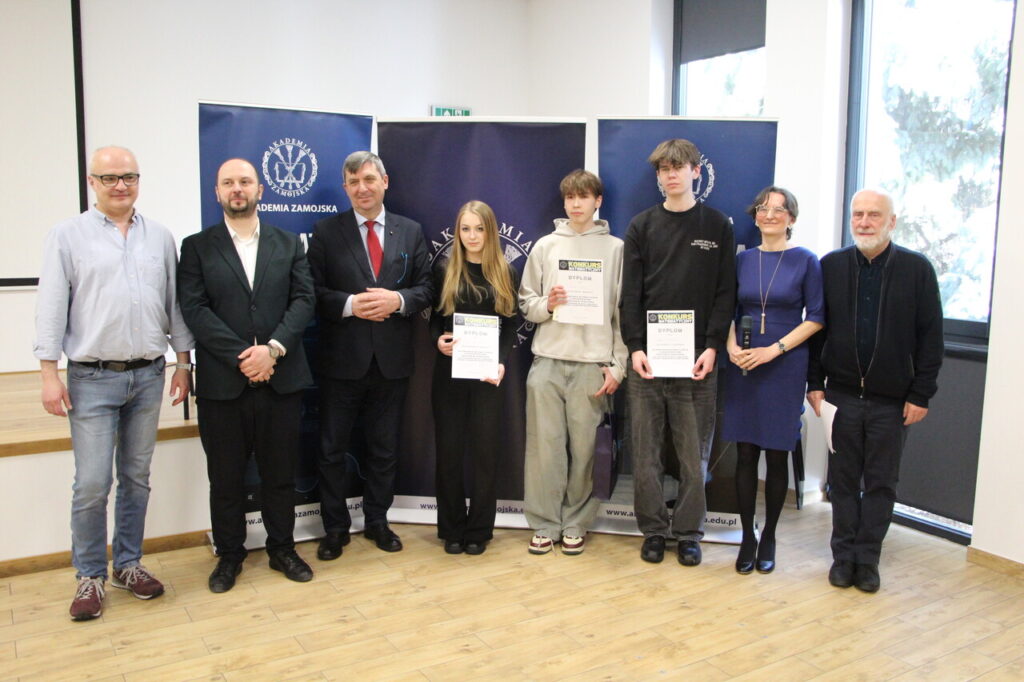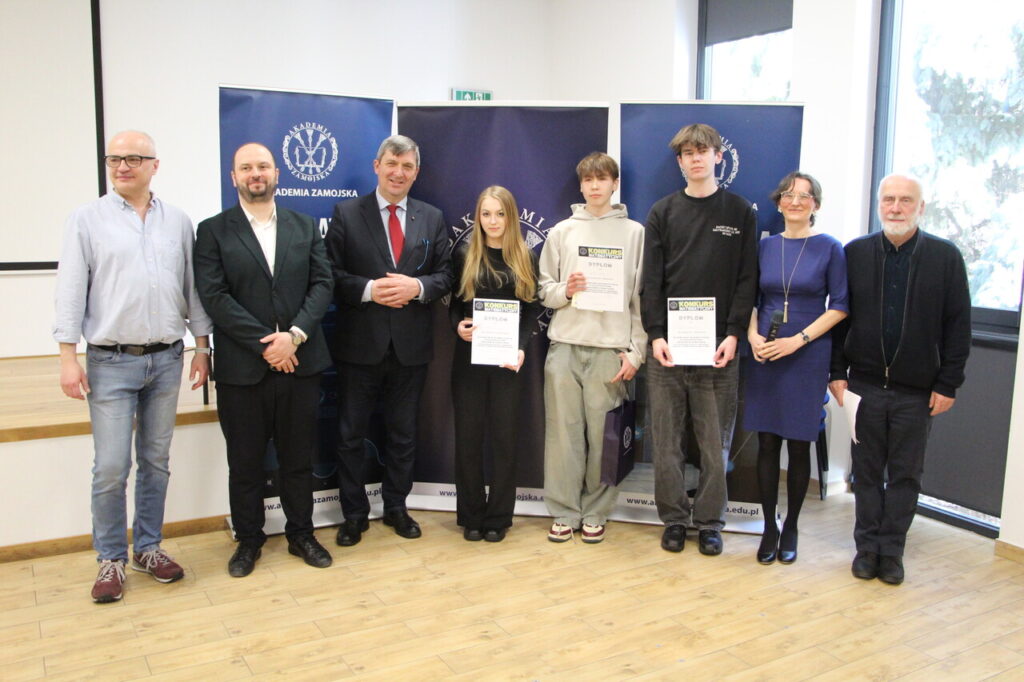 Z konkursowymi zadaniami najlepiej poradził sobie Gabriel Flak z I Społecznego Liceum Ogólnokształcącego im. Unii Europejskiej w Zamościu. Kolejne dwa miejsca na podium zajęli: Karol Kobieluch z I Społecznego LO im. Unii Europejskiej w Zamościu) – II miejsce oraz Wiktoria Szewczak z I LO im. J. Zamoyskiego w Zamościu – III miejsce.