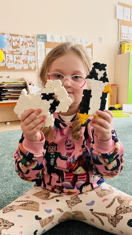 Matematyka otacza nas z każdej strony i towarzyszy nam przez całe życie. Nie bez powodu mówi się o niej Królowa Nauk. Dziś zainspirowani omawianą tematyką Arktyki i Antarktydy postanowiliśmy stworzyć z dostępnych figur geometrycznych elementy tych niezwykłych miejsc. Powstawały pingwiny, misie polarne, igla oraz schrony dla podróżników. Nasze dzieci wykazały się niezwykłą twórczością. Trening czyni mistrza.