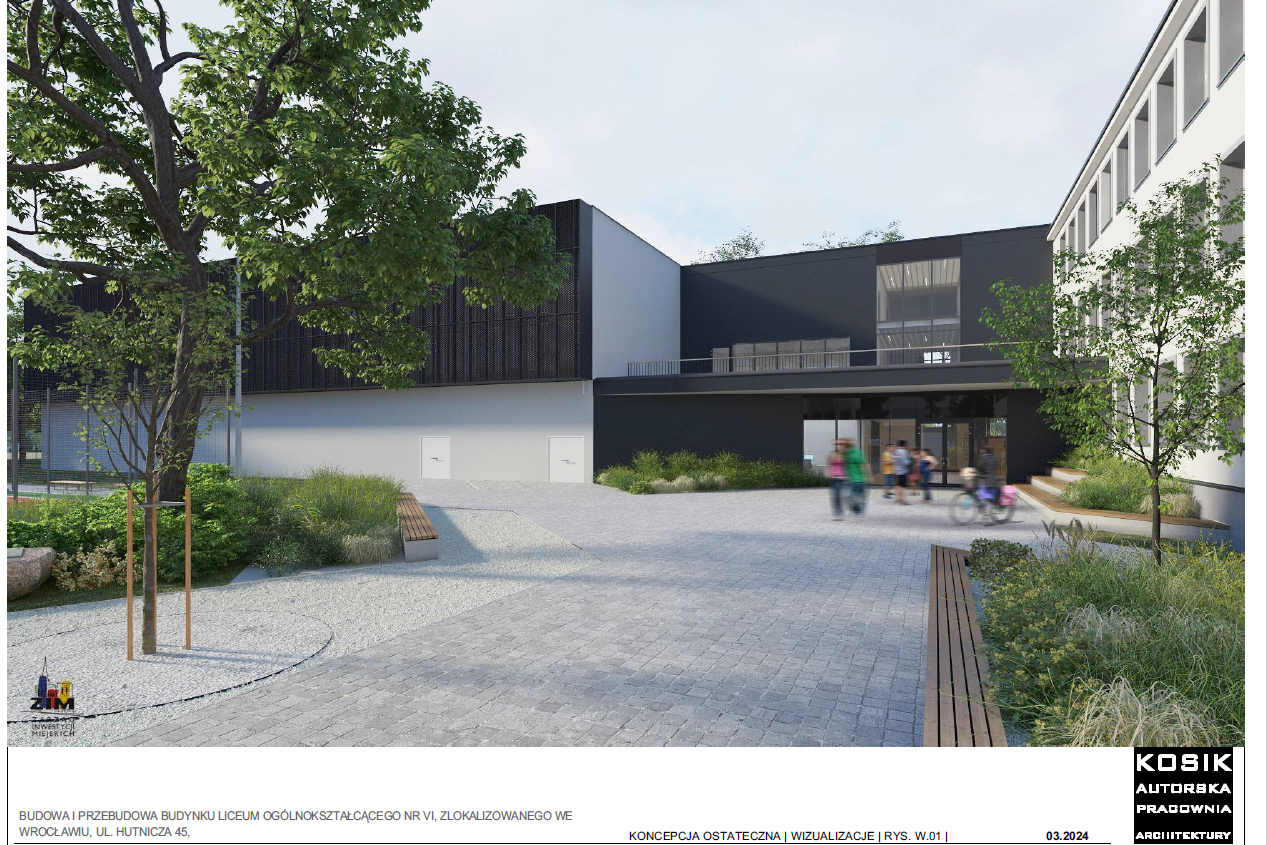 To kolejna ważna inwestycja we wrocławską edukację. Zarząd Inwestycji Miejskich podpisał umowę na projekt rozbudowy Liceum Ogólnokształcącego nr VI mieszczącego się przy ul. Hutniczej na Pilczycach. Uczniowie docelowo zyskają tu między innymi nową salę sportową. Dokumentacja ma być gotowa w pierwszym kwartale 2027 roku.