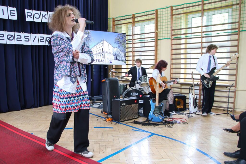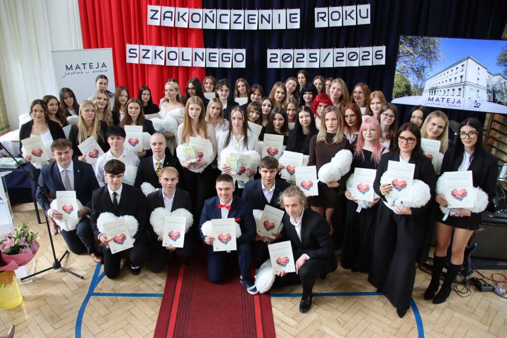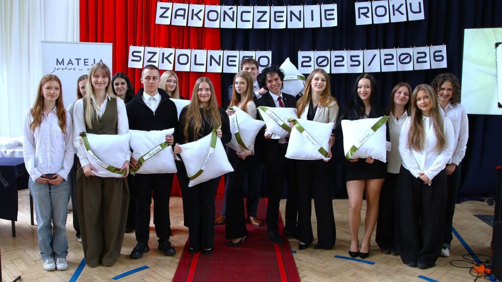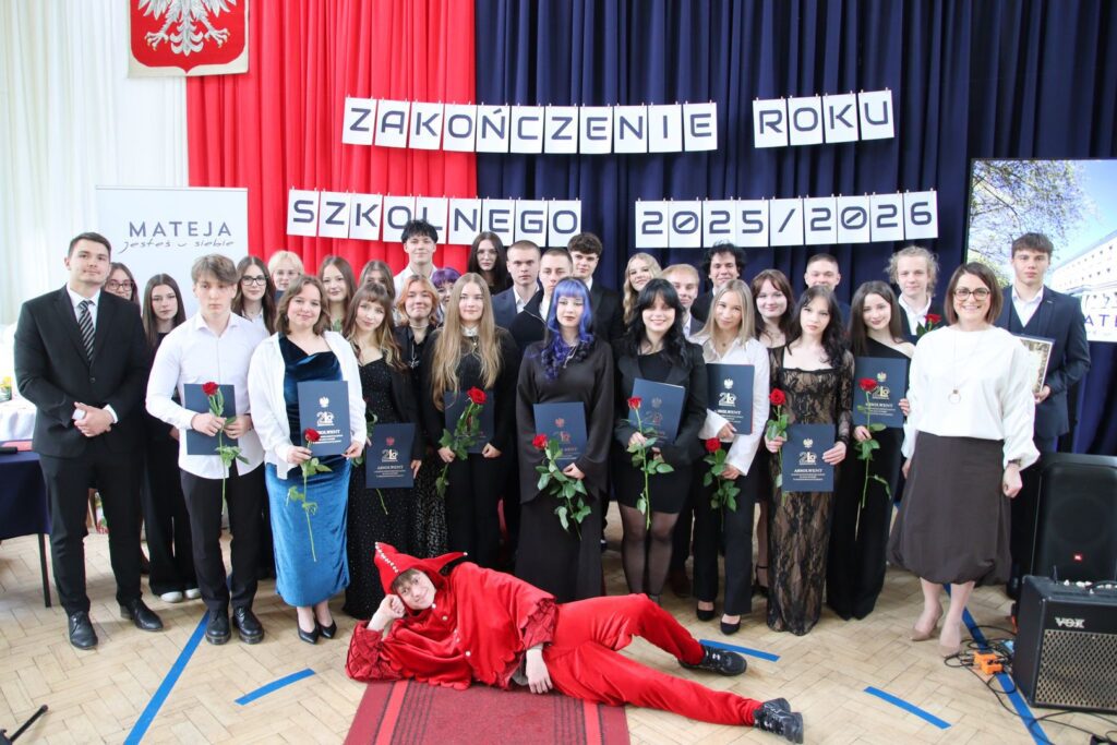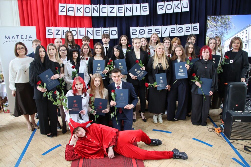 Muzyczna oprawa uroczystości w wykonaniu utalentowanych młodych ludzi z klas 3a i 3c doskonale spinała całość i stanowiła nostalgiczny kontrapunkt dla nominacji do nagród przyznanych przez społeczność szkoły, tzw. matejkowskich „Jaśków”, w kilku kategoriach „z przymrużeniem oka”. Wielu obecnym na uroczystości zakręciła się w oku łza, czy to radości, czy smutku. Jeszcze tylko pożegnania z wychowawcami, podziękowania dla pani z włoskiego czy pana z biologii i … już. Zakończenie klas 4 w LO to swoisty „rytuał przejścia”, moment zakończenia pewnego etapu życia, potem wszystko będzie inne. A jakie? Czas pokaże. A na razie cała Mateja trzyma mocno kciuki za jak najlepsze zdanie matury. Powodzenia!
