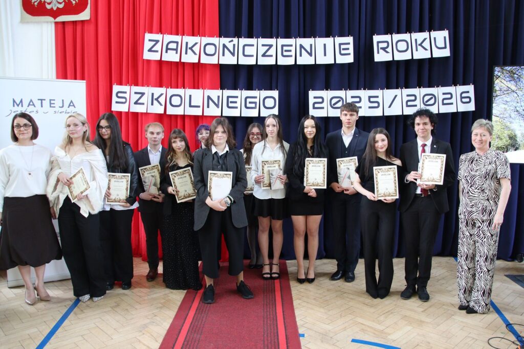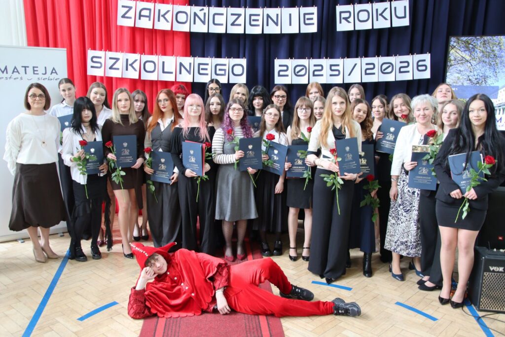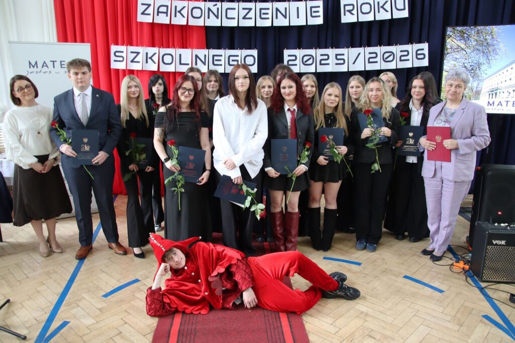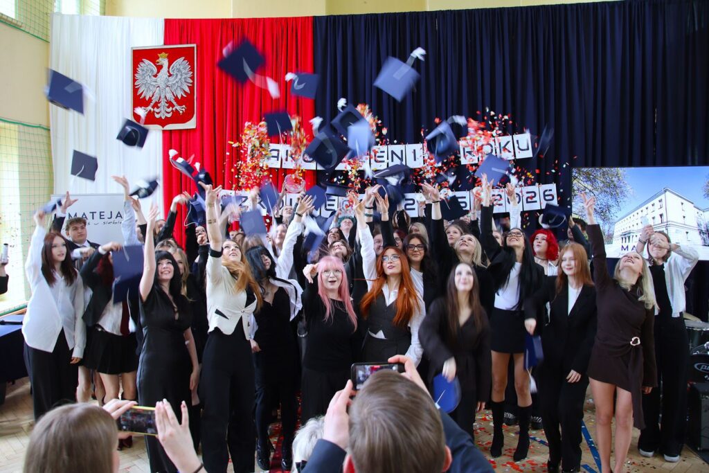 Muzyczna oprawa uroczystości w wykonaniu utalentowanych młodych ludzi z klas 3a i 3c doskonale spinała całość i stanowiła nostalgiczny kontrapunkt dla nominacji do nagród przyznanych przez społeczność szkoły, tzw. matejkowskich „Jaśków”, w kilku kategoriach „z przymrużeniem oka”. Wielu obecnym na uroczystości zakręciła się w oku łza, czy to radości, czy smutku. Jeszcze tylko pożegnania z wychowawcami, podziękowania dla pani z włoskiego czy pana z biologii i … już. Zakończenie klas 4 w LO to swoisty „rytuał przejścia”, moment zakończenia pewnego etapu życia, potem wszystko będzie inne. A jakie? Czas pokaże. A na razie cała Mateja trzyma mocno kciuki za jak najlepsze zdanie matury. Powodzenia!