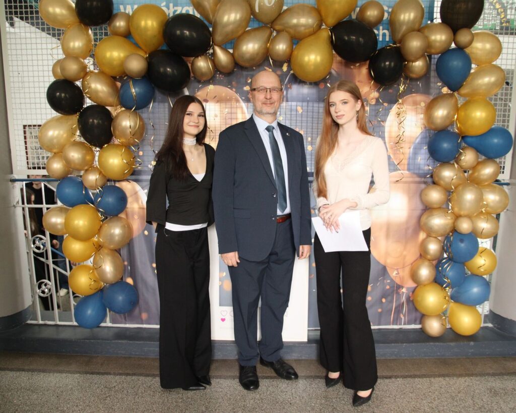 Nauczyciel Adam Balon z abiturientkami