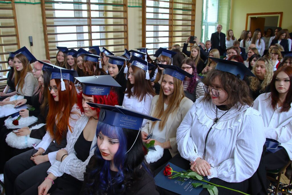 Wszyscy abiturienci otrzymali świadectwo ukończenia szkoły z rąk dyrektor II LO, Joanny Siwczyk, której pomagali przy tym wychowawcy. W tym roku Mateję ukończyły 4 klasy, więc uściskom dłoni i gratulacjom nie było końca. Wielu rodziców dumą towarzyszyło w tym dniu swoim dorosłym już dzieciom, kiedy te odbierały świadectwa z wyróżnieniem. Serdeczne podziękowania były skierowane także do nich. Pamiątkowe zdjęcia pomogą zachować w pamięci moment ostatnich chwil spędzonych jako klasa. Te na poważnie – ze świadectwami w ręku, ale też te na wesoło – z konfetti spadającym jak deszcz i biretami wyrzuconymi w górę w geście mówiącym „To już! Czas na nas!”.