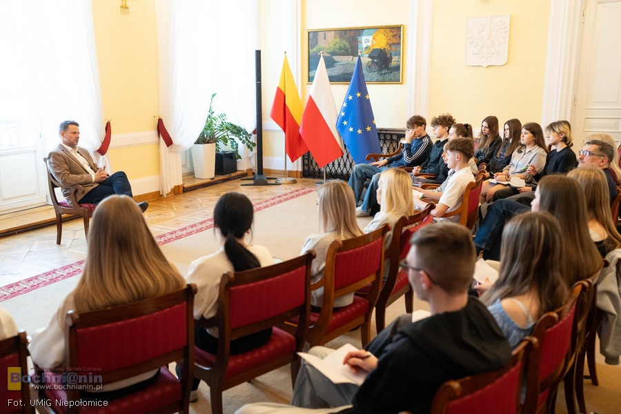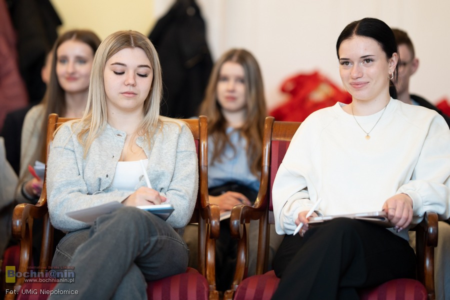 Burmistrz Niepołomic Michał Hebda podkreślił wysoki poziom przygotowania uczniów. – Jestem pod wrażeniem poziomu wiedzy i świadomości naszej młodzieży z Zespołu Szkół – dociekliwe pytania, solidna wiedza i odwaga w dyskusji. Szacunek dla Was. Jak zaznaczył, spotkanie było dla niego również okazją do rozmowy z kolegą samorządowcem z większego miasta.