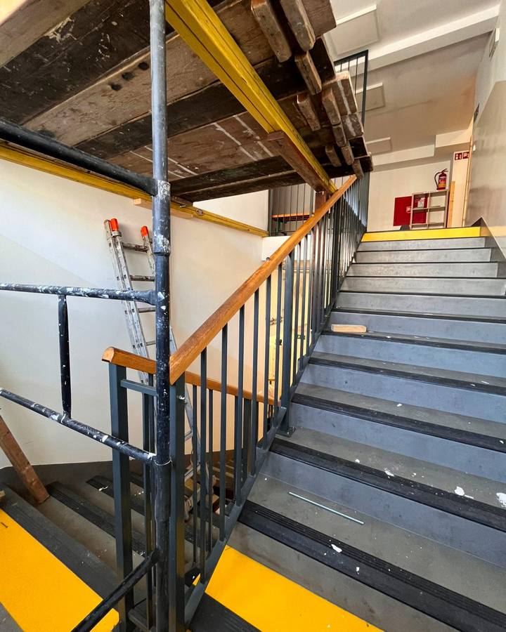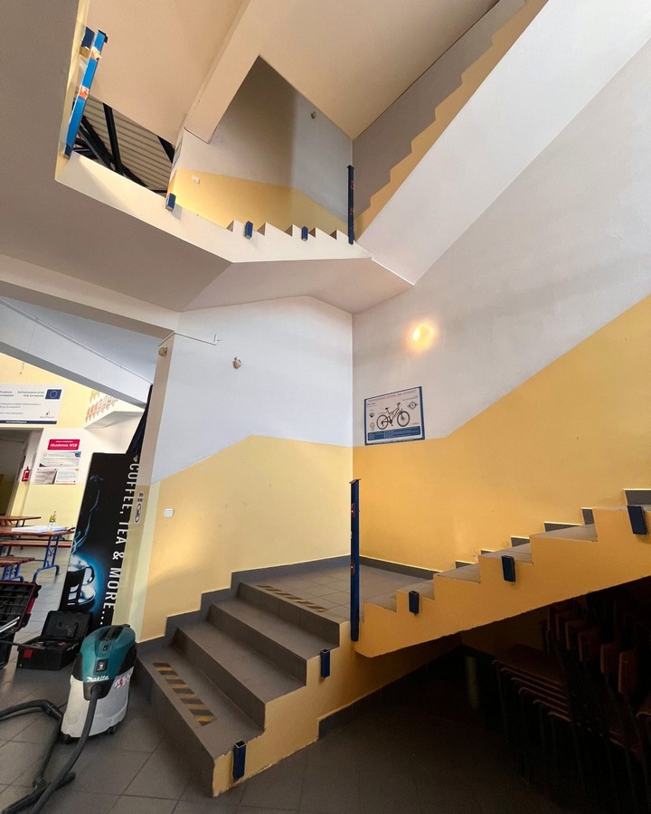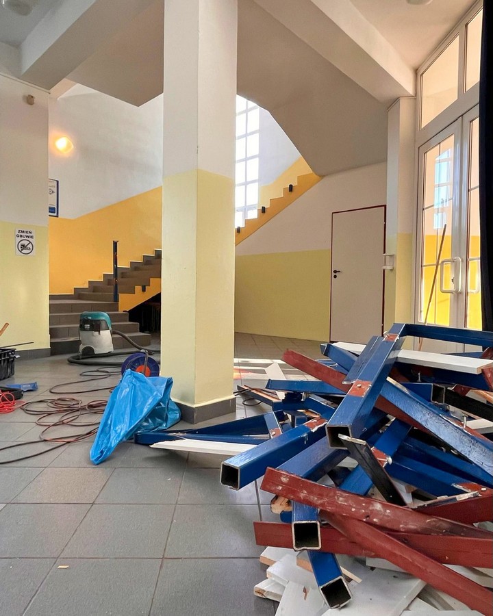 Prace prowadzone są także w Zespole Szkół w Niepołomicach. Tam w czasie ferii realizowana jest przebudowa kantorka dla nauczycieli wychowania fizycznego – po remoncie pomieszczenie ma być ponad dwukrotnie większe niż dotychczas. Wymieniana jest również balustrada przy schodach prowadzących do auli. Stara barierka była już zużyta i – jak zaznaczył burmistrz – wymagała wymiany przede wszystkim ze względów bezpieczeństwa.