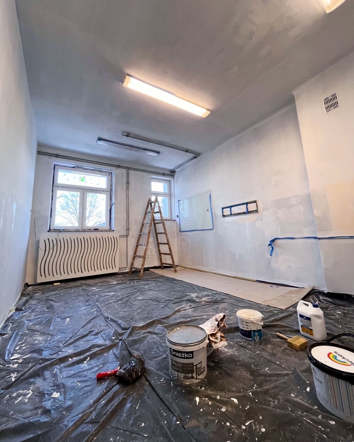 Remonty objęły również mniejsze placówki. W Zespole Szkolno-Przedszkolnym w Suchorabie odświeżane są dwie sale lekcyjne – dla klas pierwszej i ósmej. Prace obejmują szpachlowanie, malowanie oraz zabezpieczenie ścian przed wilgocią. Odnawiany jest także sekretariat szkoły, gdzie wymieniana jest wykładzina podłogowa i odświeżane ściany. Część robót wykonuje zespół Infrastruktury Niepołomice, a część realizowana jest własnymi siłami szkoły. W planach są jeszcze kolejne prace – m.in. wykończenie ścian na korytarzach oraz remont sali gimnastycznej, które jednak mają zostać zrealizowane w późniejszym terminie.