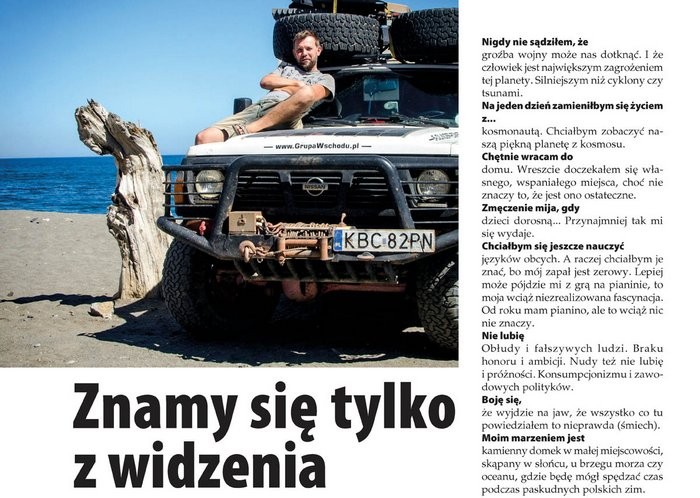 Bohaterem cyklu „Znamy się tylko z widzenia” jest Marcin Kozłowski. Od kilkunastu lat przemierza świat wraz z żoną Dominiką. Są autorami książki „Pod wiatr. 60 tysięcy kilometrów przez Afrykę” i artykułów, m.in. w „Kronice Bocheńskiej”.