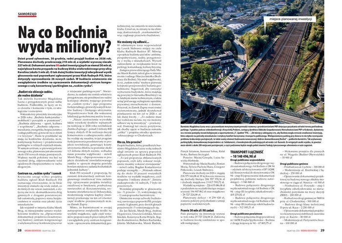 Na co Bochnia wyda miliony? Agnieszka Dziki analizuje budżet miasta na 2026 rok, o którym burmistrz Magdalena Łacna mówiła: – „Nie obiecuje cudów, ale realne działania”. Podczas dyskusji radni przyglądali się między innymi planowanej rewitalizacji Zamku Żupnego oraz koncepcji obiektu mającego powstać na „ruskim rynku”.