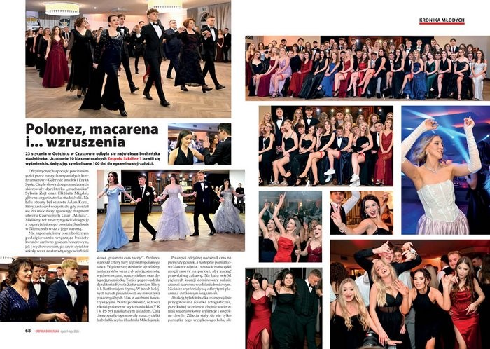 „Polonez, macarena i… wzruszenia” – taki tytuł nosi artykuł o balu studniówkowym Zespołu Szkół nr 1. Kinga Faber i Olivia Goryczka zdradzają: – „Jednym z największych przebojów wieczoru okazała się piosenka „Halo, tu Londyn” odtwarzana kilkakrotnie. Nie mogło zabraknąć muzyki disco polo oraz góralskich hitów, między innymi utworów zespołu Baciary, przy których maturzyści bawili się wyjątkowo chętnie”.