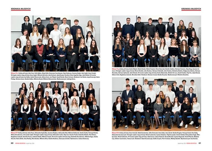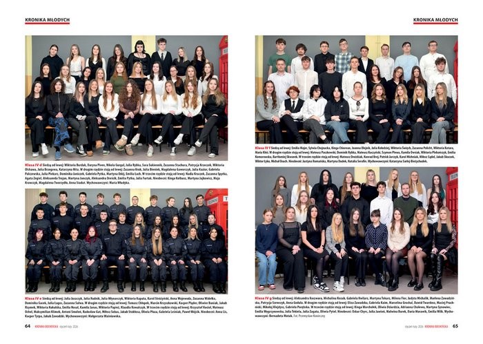 Nowy numer „Kroniki” ma szczególne znaczenie dla młodzieży dziewięciu klas I Liceum Ogólnokształcącego. Uczniowie w eleganckich strojach pozują do zbiorowych fotografii, które są szczegółowo opisane.